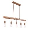 Entdecken Sie den Charme der Hängeleuchte JAKOB mit fünf E27 Fassungen auf einem rostfarbenen Metallbalken, perfekt geeignet, um eine warme Vintage-Atmosphäre in jedem Raum zu schaffen.