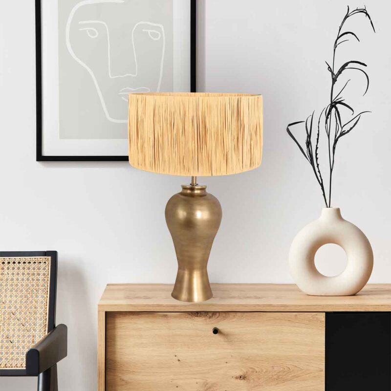 Diese Tischlampe ist mit einer E27-Fassung und einem Leinen-Schirm ausgestattet, was für eine angenehme, sanfte Beleuchtung sorgt. Der Schnurschalter macht die Nutzung einfach und praktisch. Die Kombination von hochwertigen Materialien und einem eleganten Design macht diese Lampe zur perfekten Wahl für stimmungsvolle Beleuchtung im Zuhause.