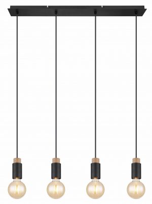 Setzen Sie ein Statement mit dieser minimalistischen Hängeleuchte, die vier 1,2 m lange stimmungsvolle Lichtquellen bietet, abgehängt von einer mattschwarzen, rechteckigen Deckenmontage (8x75cm). Eleganz trifft auf Funktionalität in den vier E27-Fassungen, verziert mit einer raffinierten Kombination aus Holz und Metall, in denen Sie die Lichtart und die Intensität bis zu 40 Watt wählen können. Für eine langanhaltende und umweltfreundliche Nutzung wird die Verwendung von LED-Lampen dringend empfohlen. Mit dieser Hängeleuchte haben Sie die Möglichkeit, die gewünschte Atmosphäre in Ihrem Zuhause zu schaffen.