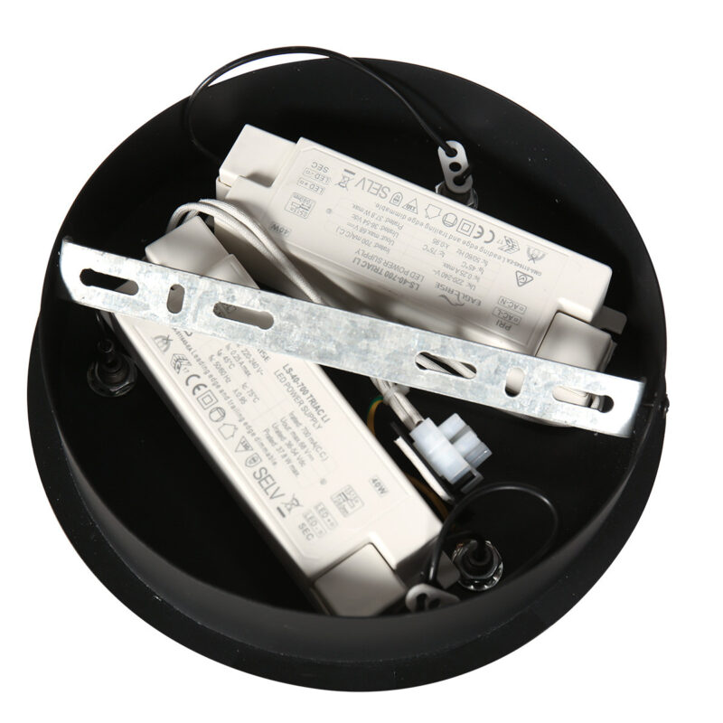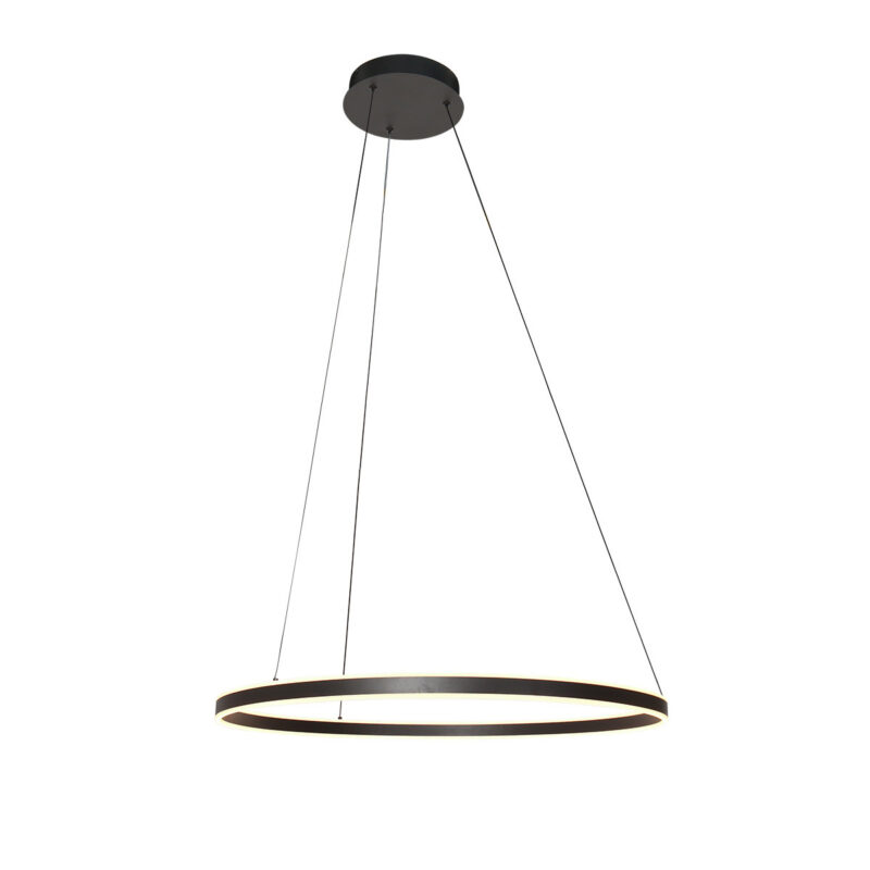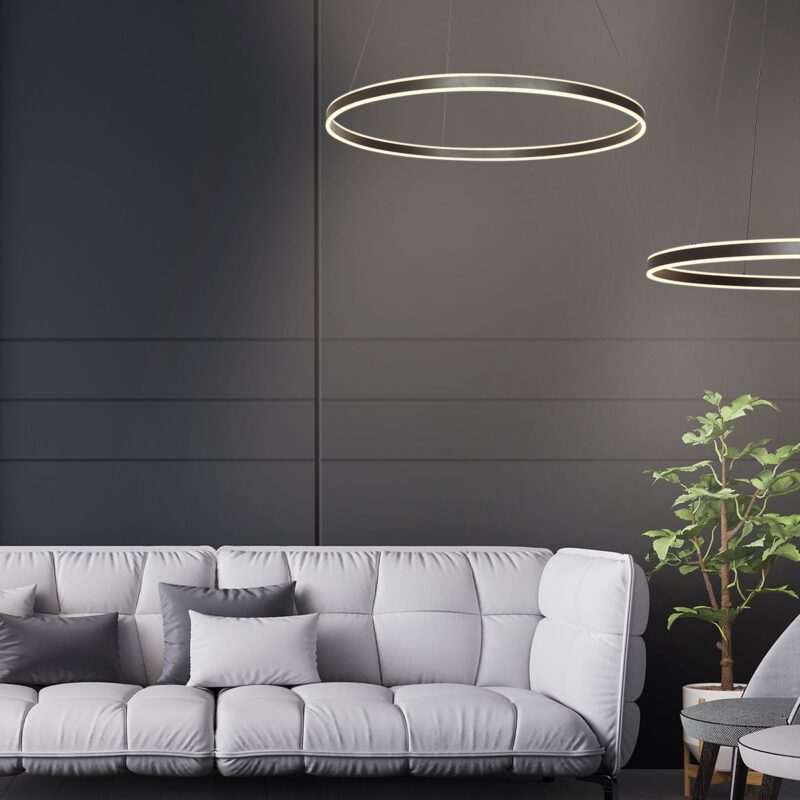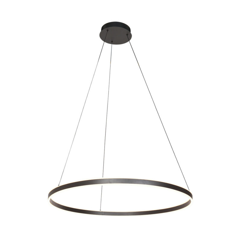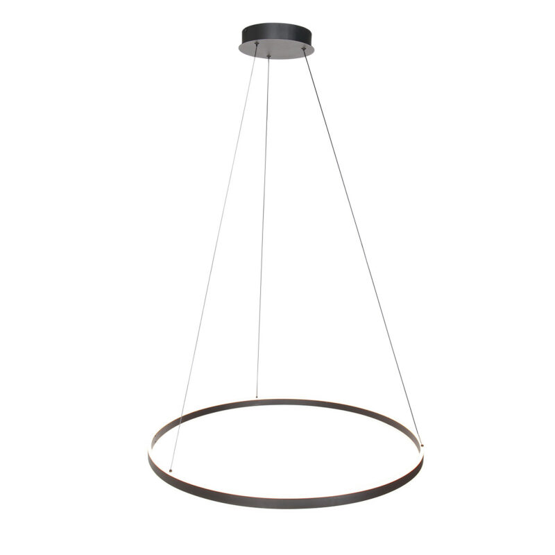Die schwarze Ringlux Hängelampe mit einem Durchmesser von 80 cm kombiniert ein klares Design mit funktionaler Beleuchtung. Die LED-Beleuchtung strahlt sowohl nach oben als auch nach unten und hat eine Farbtemperatur von 2700K sowie eine Lichtausbeute von 5400 Lumen. Die Lampe ist dimmbar mit einem externen Dimmer (2 x 30W) und in der Höhe zwischen 50 und 190 cm verstellbar. Geliefert mit 2 Jahren Herstellergarantie.