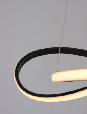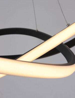 Auf der Suche nach einer eleganten modernen Hängeleuchte? Diese Lampe hat einen echten Wow Faktor. Diese Lampe hat in einander geflochtene Lichtelemente. Die eingebauten LED-Strips sind dimmbar. Drei Metalldrähte verbinden den dynamischen Lampenschirm mit der runden Deckenplatte.