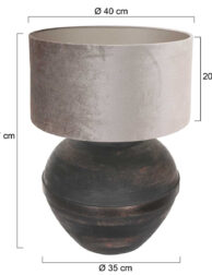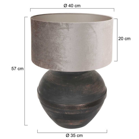 Mit seiner eleganten, bauchigen Vasenform und der robusten Holzverarbeitung ist diese Tischlampe eine wunderschöne Ergänzung für dein Interieur. Die Höhe von 40 cm und der Durchmesser von 36 cm machen die Lampe zu einer idealen Wahl für stilvolle Beleuchtung. Die dunkelbraune, fast schwarze Farbe setzt einen kraftvollen Akzent in einem ländlichen Interieur, während die neigbare E27-Fassung dafür sorgt, dass der Schirm immer genau ausgerichtet ist.