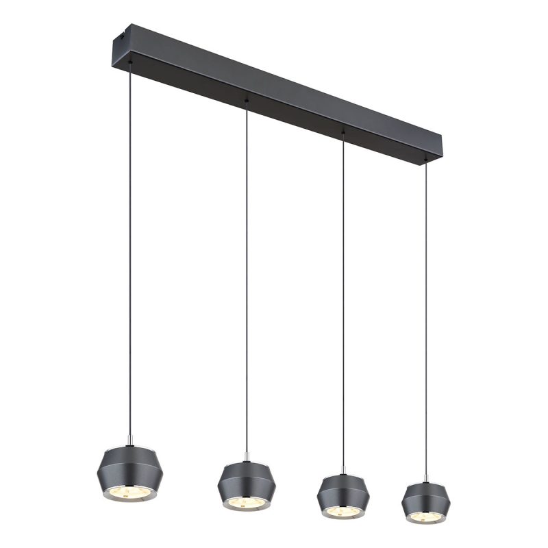 <pDiese Hängeleuchte ist aus mattem grauem Metall und gebürstetem titanfarbenem Aluminium gefertigt und kombiniert mit opalisiertem Acryl. Mit einem Durchmesser von 805 mm und einer Höhe von 2000 mm bietet die Leuchte helles Licht dank der mitgelieferten 24W LED-Lampe (2900 lm, 3000K).
