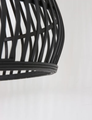Diese Rattan-Aufhängung sieht aus wie aus einem Märchen. Der hölzerne Lampenschirm ähnelt einem Käfig. Die einzeln zusammenlaufenden Holzstreben verleihen der Aufhängung einen leichten und luftigen Charakter. Das Lampenmodell ist schwarz. Sie wird normalerweise als Esstischlampe verwendet, passt aber im ganzen Eigenheim. Verwenden Sie Lampen mit einer E27-Fassung. Diese Pendelleuchte gilt als ein Produkt der neuesten Trends auf dem Beleuchtungsmarkt und ist einfach unverzichtbar.