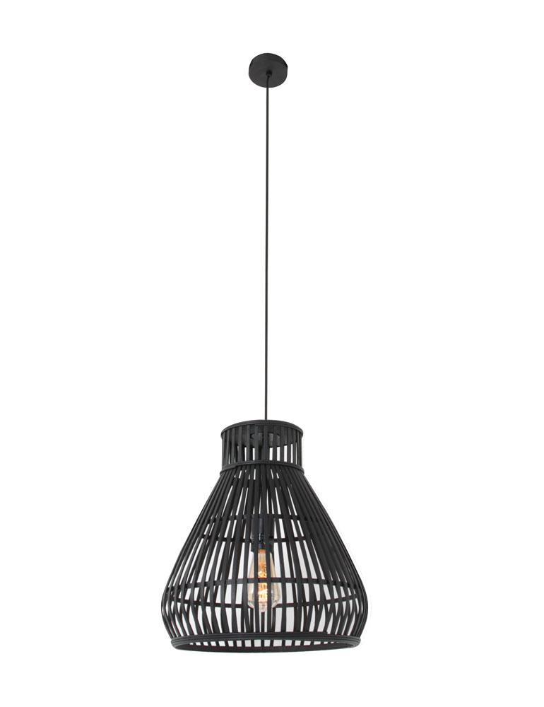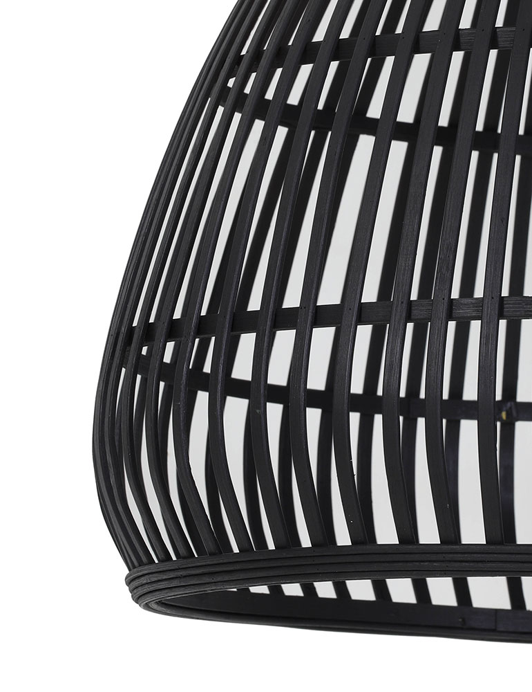 Diese Rattan-Aufhängung sieht aus wie aus einem Märchen. Der hölzerne Lampenschirm ähnelt einem Käfig. Die einzeln zusammenlaufenden Holzstreben verleihen der Aufhängung einen leichten und luftigen Charakter. Das Lampenmodell ist schwarz. Sie wird normalerweise als Esstischlampe verwendet, passt aber im ganzen Eigenheim. Verwenden Sie Lampen mit einer E27-Fassung. Diese Pendelleuchte gilt als ein Produkt der neuesten Trends auf dem Beleuchtungsmarkt und ist einfach unverzichtbar.