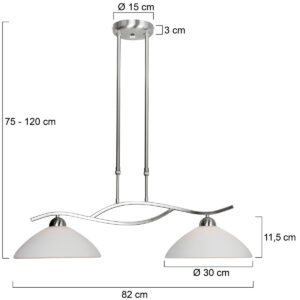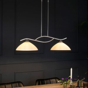 Stahl Hängelampe 2-Lichter Schirme Milchglas Steinhauer Capri
