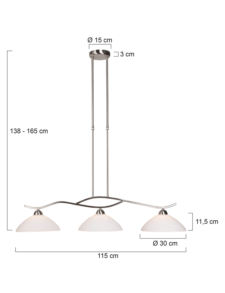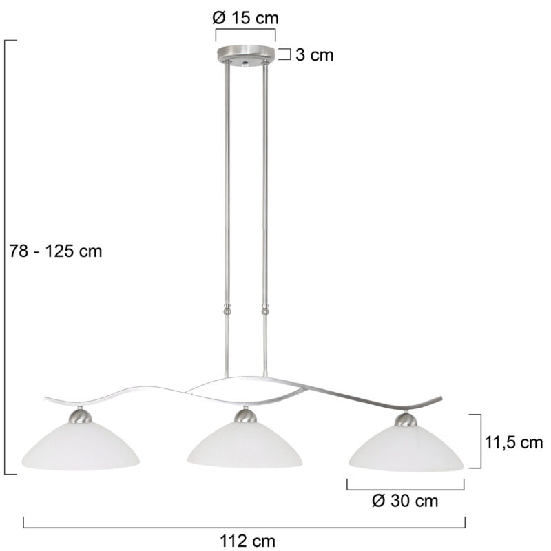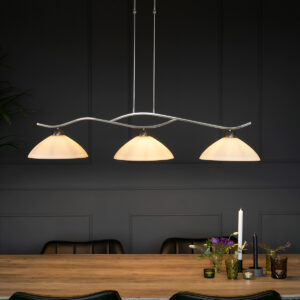 3-Lichter Stahl Hängelampe Milchglas Schirme Steinhauer Capri