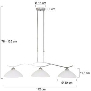 Die 3-flammige Hängeleuchte aus der Capri-Serie von Steinhauer bietet eine ausgewogene Kombination aus modernem und klassischem Design. Die schlanken Metallrohre verleihen der Lampe ein zeitgemäßes Aussehen, während die eleganten Glasabschlüsse einen warmen Lichteffekt erzeugen. Ausgestattet mit drei E27-Fassungen, geeignet für Lichtquellen bis 40 Watt, verbreitet diese Lampe eine angenehme und gleichmäßige Beleuchtung. Die Höhe ist zwischen 78 und 125 cm verstellbar, und mit einer Breite von 115 cm ist diese Lampe ideal über einem Esstisch oder in einem geräumigen Wohnzimmer.