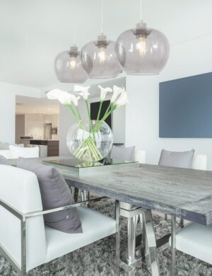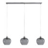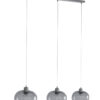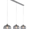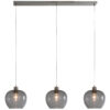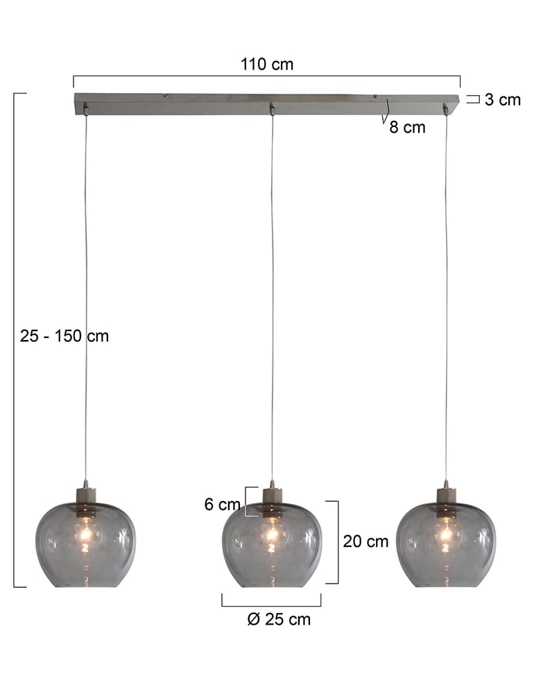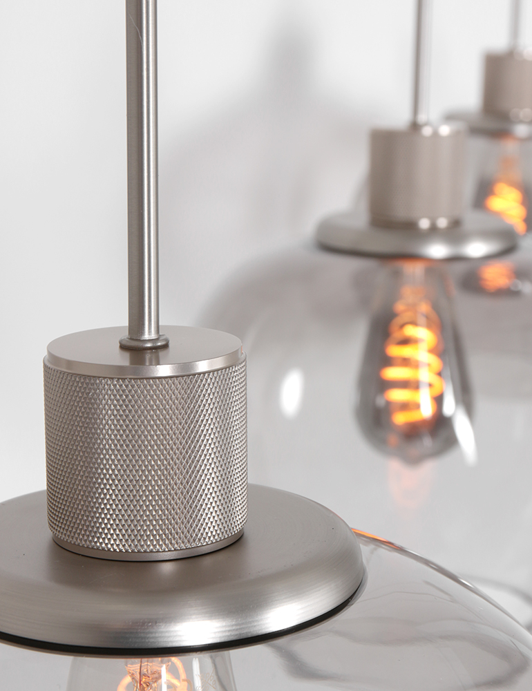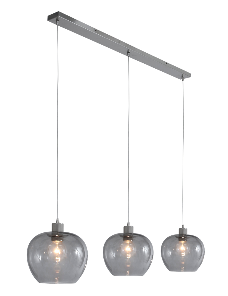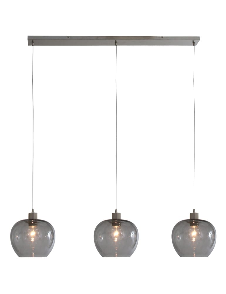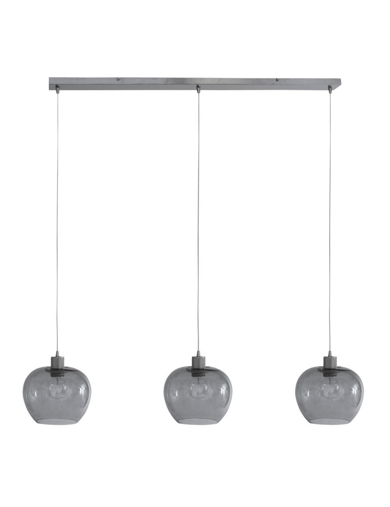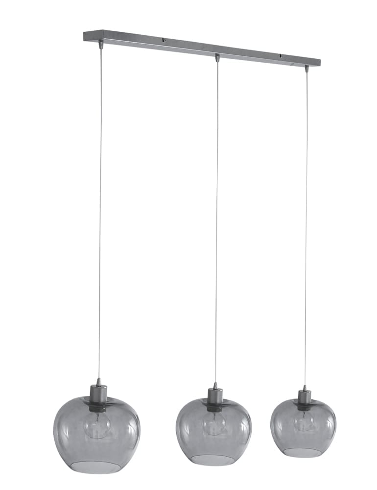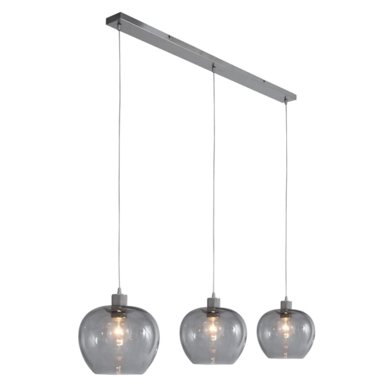 Liebst du schöne, stilvolle Elemente in deinem Interieur? Diese moderne dreilicht Hängeleuchte aus Rauchglas ist absolut zeitgemäß und passt in nahezu jedes Zuhause. Die Lampe hat drei Lampenschirme aus schön getöntem Rauchglas, das gerade in Mode ist. Das liegt an dem märchenhaften Licht, das die Lampe ausstrahlt, wenn sie brennt. Mit einem externen Dimmer kannst du die Lichtintensität nach deinen Wünschen einstellen. Ganz im Stil ist die Deckenplatte aus gebürstetem Stahl, die denselben Grauton wie die Schirme hat. Damit ist diese Lampe wirklich ein Schmuckstück über deinem Esstisch!