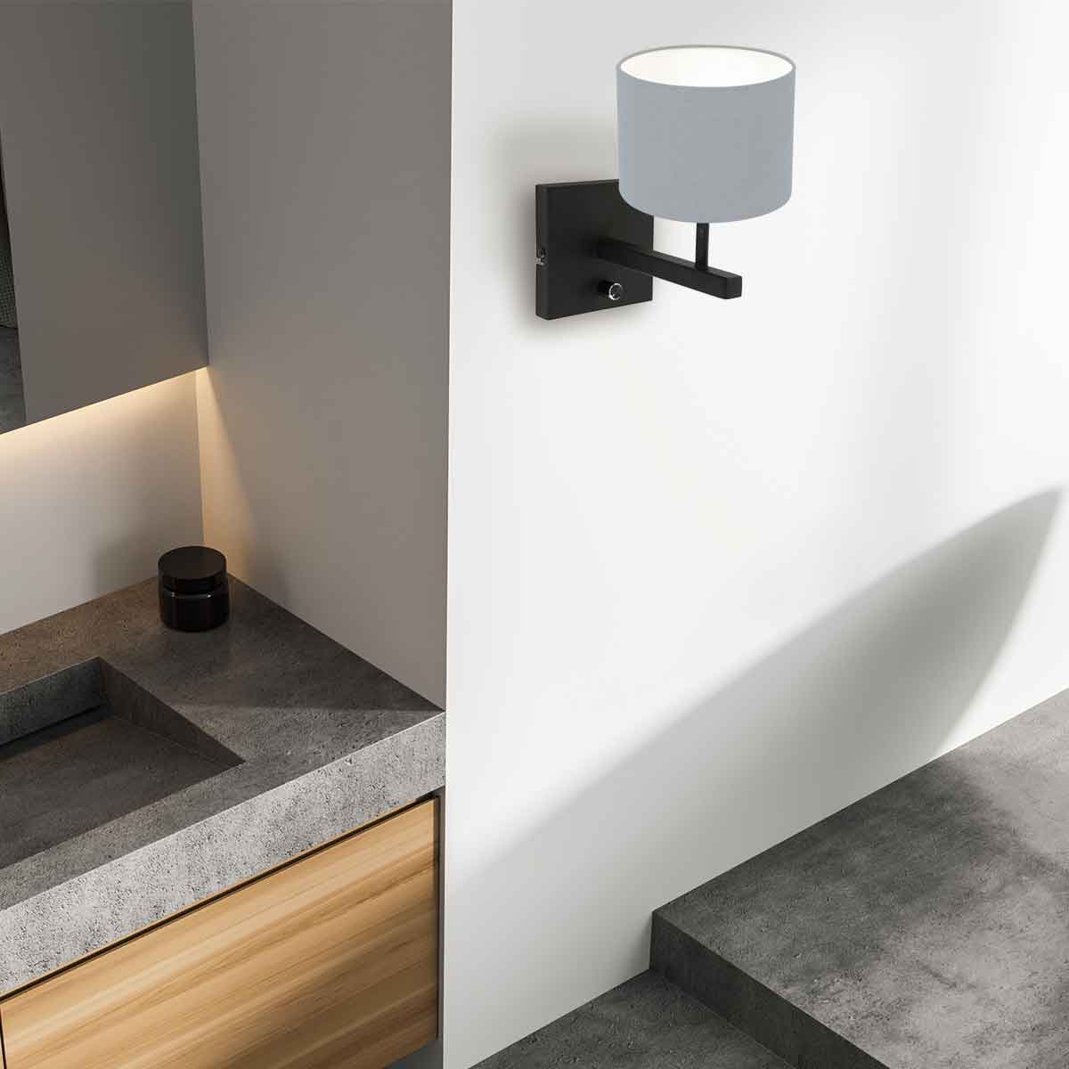 Die moderne kleine Wandlampe aus der Stang-Serie von Steinhauer bietet eine trendige Beleuchtung für Wohn- oder Büroräume, Esszimmer, Schlafzimmer und Wohnzimmer. Diese Lampe, hergestellt aus Metall und Stoff, hat ein zeitgemäßes Erscheinungsbild. Das schwarze Finish verleiht einen modernen Touch. Mit einer E27-Fassung und IP20 Staubdichtigkeit ist diese Wandlampe sowohl funktional als auch modisch.