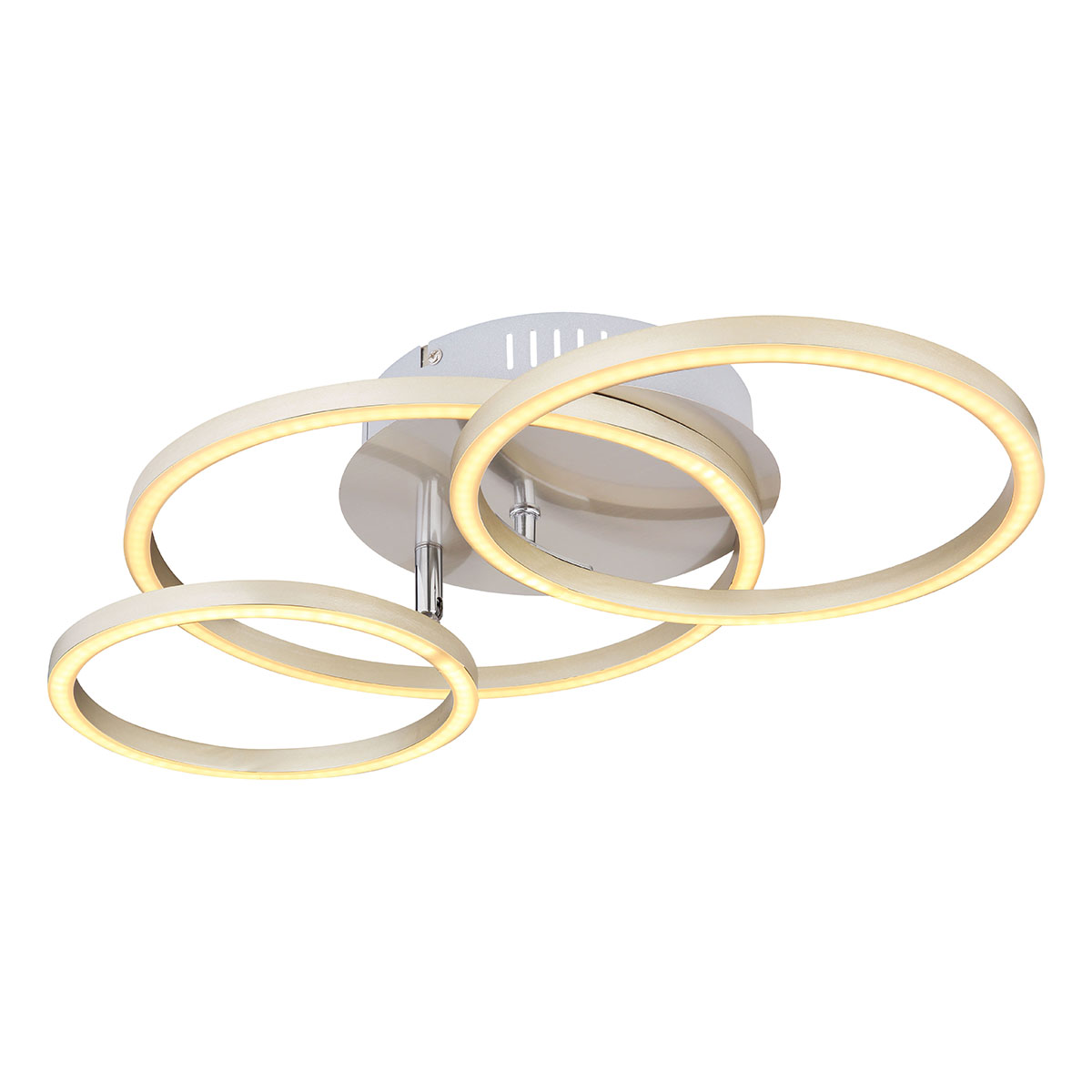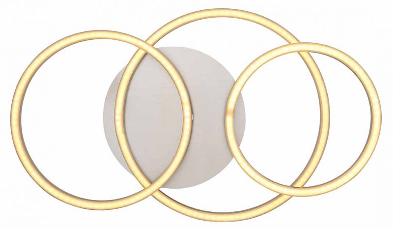 Schaffen Sie ein Statement in Ihrem Interieur mit dieser faszinierenden LED-Deckenleuchte, die aus mattem Nickel und fesselnden gebogenen Formen gefertigt ist. Sie besteht aus drei Ringen in verschiedenen Größen (30cm, 25cm und 20.5cm) und taucht jeden Raum in eine besondere Atmosphäre. Ausgestattet mit drei fest eingebauten LED-Lampen bietet die Leuchte nicht nur ein voluminöses Design, sondern auch Langlebigkeit und Energieeffizienz. Mit minimaler Wärmeentwicklung und einer langen Lebensdauer fügt sich dieses Schmuckstück nahtlos in jedes moderne Zuhause ein und schafft eine auffällige Lichtatmosphäre.