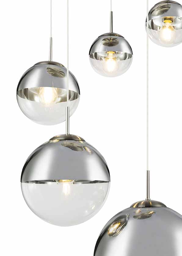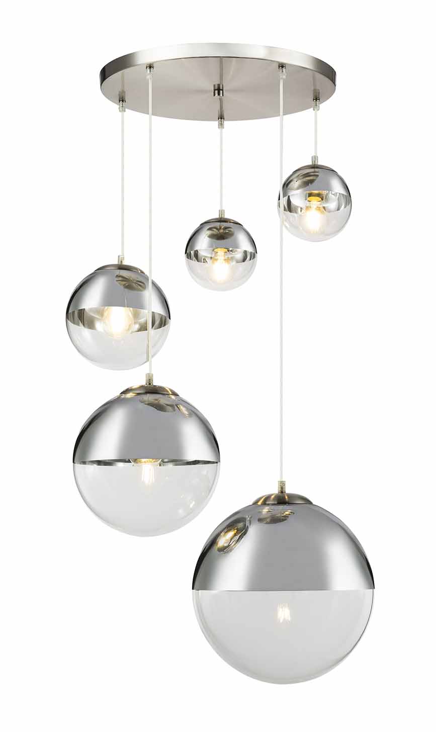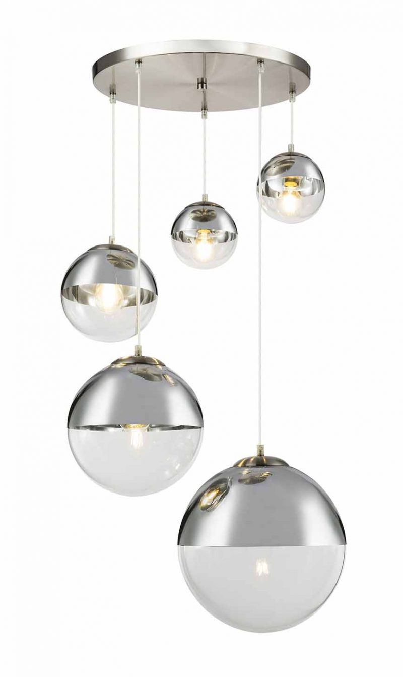 Strahlen Sie Raffinesse mit der Varus Hängeleuchte aus, einem wunderschönen Beispiel modernen Designs. Bekleidet mit einer nickel-matten Glaskugel, taucht diese Lampe mit einem Durchmesser von 65 cm jeden Raum in ein angenehmes Licht. Sie verfügt über fünf E27-Anschlüsse, mit denen Sie die Lichtausgabe bis zu 40 Watt steuern können, je nach Ihren persönlichen Vorlieben für Lichtfarbe und Intensität. Für Energieeffizienz und Nachhaltigkeit werden LED-Lampen empfohlen. Darüber hinaus ergänzt diese Hängeleuchte mühelos andere Artikel aus der Varus-Kollektion.