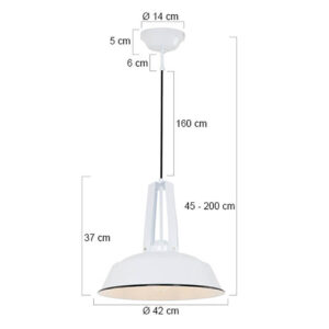 Die weiße Hängeleuchte Eden von Mexlite kombiniert ein Retro-Design mit einem ländlichen Flair. Dank der neutralen Farbe lässt sich diese Metall-Hängeleuchte einfach mit verschiedenen Einrichtungsstilen kombinieren. Der Deckenanschluss hat einen Durchmesser von 14 cm und eine Höhe von 5 cm, während der weiße Schirm einen Durchmesser von 42 cm hat. Ausgestattet mit einer E27-Fassung, geeignet für Lichtquellen bis maximal 60 Watt. Das 160 cm lange Kabel und die verstellbare Höhe von bis zu 200 cm machen diese Lampe zusätzlich flexibel im Gebrauch. Ideal für das Esszimmer, den Flur, das Schlafzimmer oder das Wohnzimmer. Diese Lampe wird mit 2 Jahren Herstellergarantie geliefert.