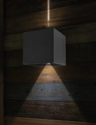 Die minimalistische Würfelleuchte Steinhauer Muro schwarz ist eine Komposition mit außergewöhnlichen Werten. Es handelt sich um eine schlichte Leuchte in Form eines schwarzen Würfels, die perfekt in eine moderne Umgebung passt. Diese kleine, aber robuste Konstruktion besteht aus Metall und ist mit einem energieeffizienten und langlebigen LED-Modul ausgestattet, das Licht in warmer Farbe abgibt. Zudem garantiert die erhöhte Dichte die Widerstandsfähigkeit der Leuchte gegen Wasser und Schmutz, sodass du sie auch an der Fassade montieren kannst.