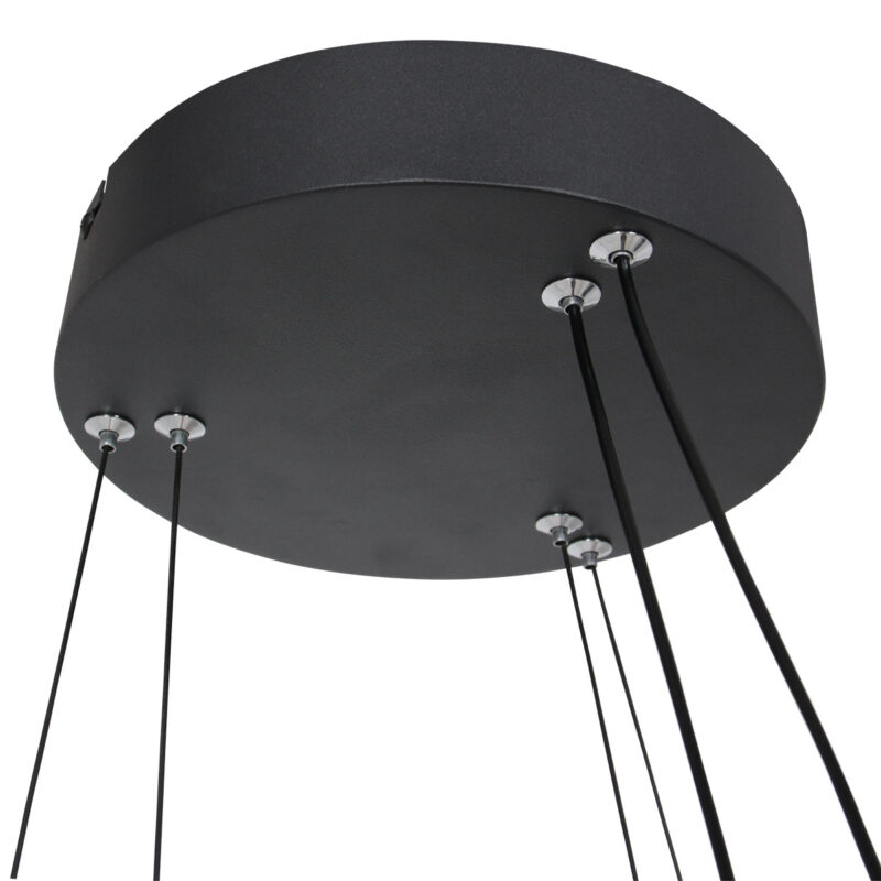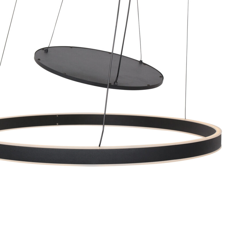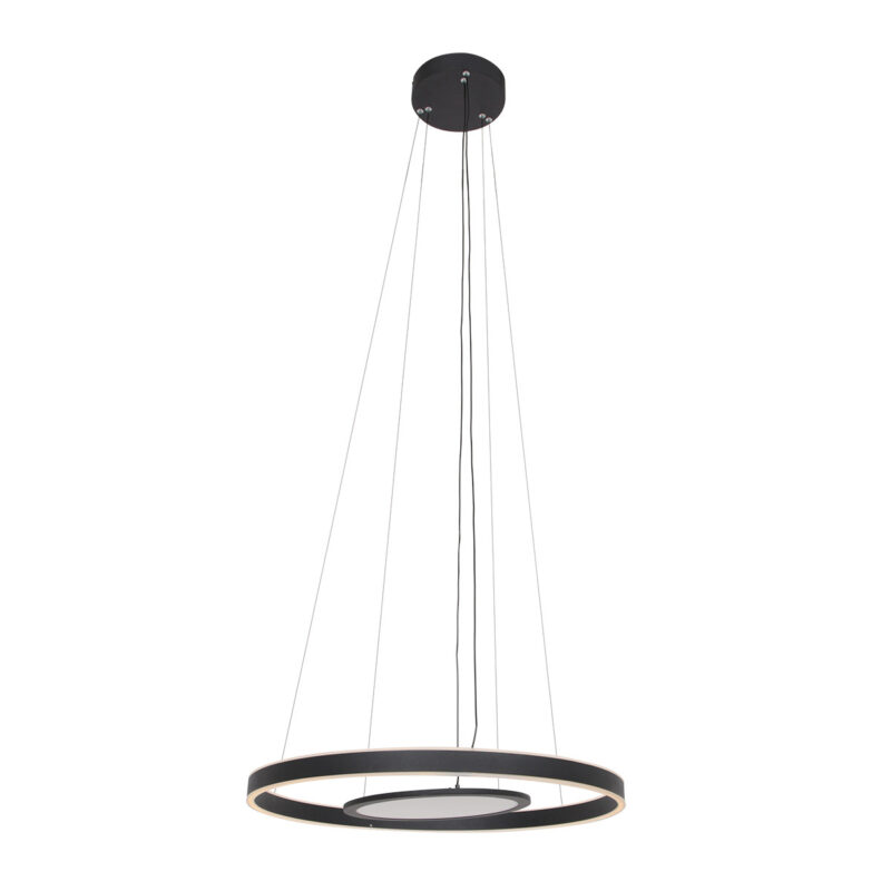 Der schwarze Metallring mit einem Durchmesser von 60 cm verteilt das Licht sowohl nach oben als auch nach unten, was für einen ausgewogenen und sanften Effekt sorgt. Mit einer Lichtausbeute von 6600 Lumen und einer warmen Farbtemperatur von 2700 Kelvin ist diese Lampe perfekt über dem Esstisch oder als zentrales Beleuchtungselement im Wohnzimmer. Die dimmbare Funktion ermöglicht eine einfache Anpassung der Lichtstärke.