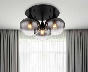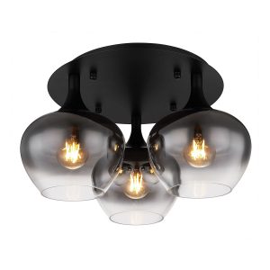 Diese schöne Deckenleuchte inspiriert mit einem großartigen Design. Auf einer runden Deckenhalterung (Ø 30 cm) befinden sich drei E27-Fassungen mit eleganten Rauchglas-Schirmen (Ø 18 cm). Mit den E27-Fassungen können Sie selbst die Lichtfarbe und Helligkeit bis zu einer maximalen Leistung von 40 Watt bestimmen. Aufgrund der langen Lebensdauer und Energieeinsparung empfehlen wir LED-Lampen.