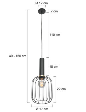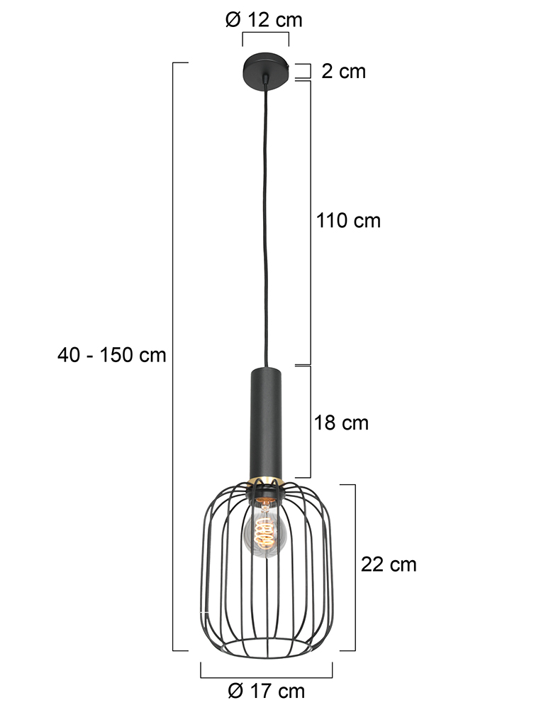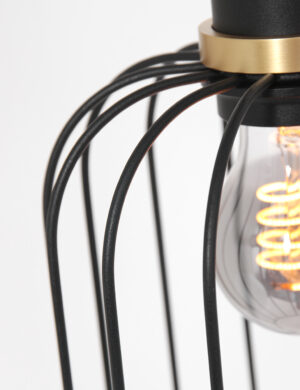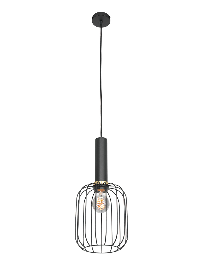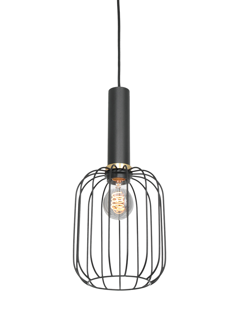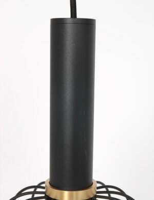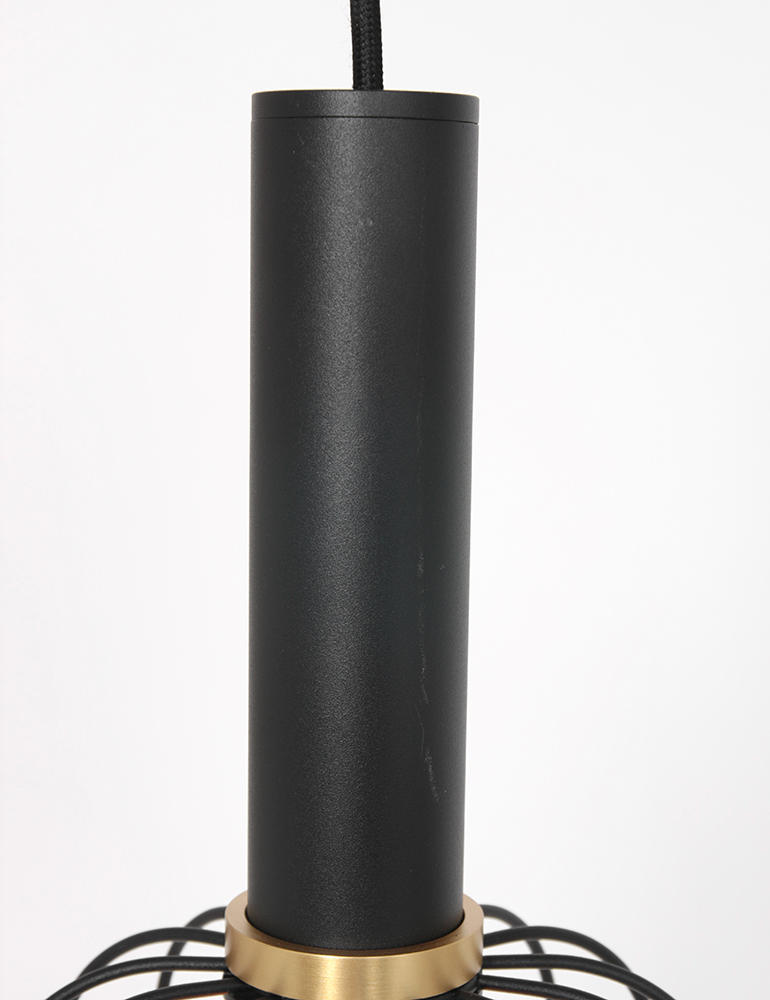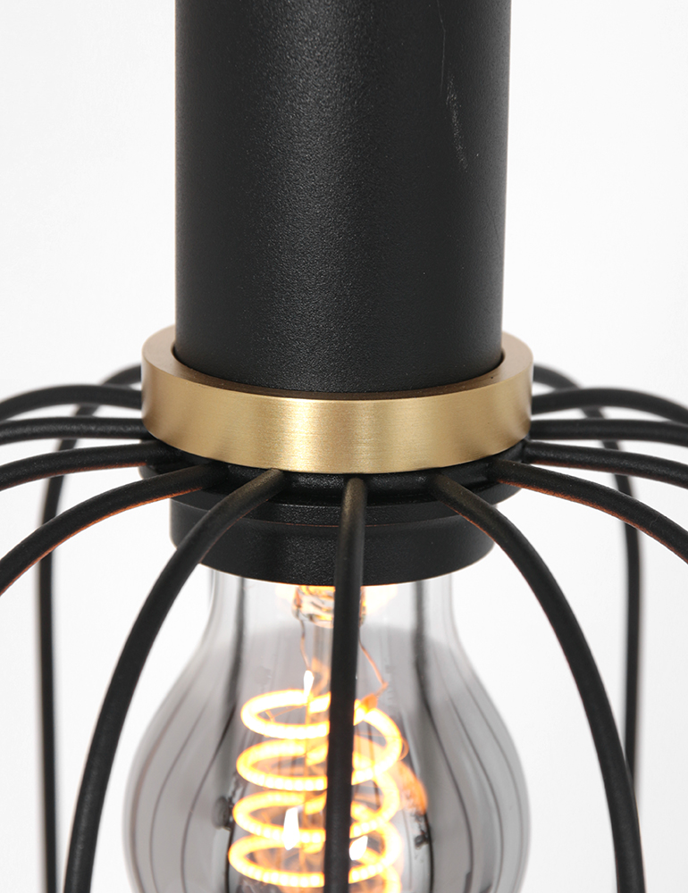 Suchst du ein besonderes Design und eine Lampe mit industriellem Look? Dann entscheide dich für die moderne schmale Drahtpendelleuchte Mexlite Aureole schwarz! Diese Pendelleuchte besteht aus langen schwarzen Stahlkabeln, die in einer schmalen Form aufeinander zulaufen. Ein goldenes Messing-Ring an der Oberseite ergänzt das Ganze. Die offene Struktur sorgt dafür, dass das Licht viel Raum erhält. Eine ideale Lampe für den Flur, die Küche oder einfach im Wohnzimmer.