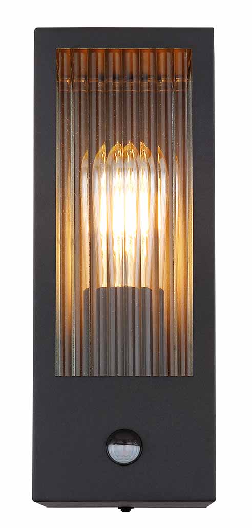 Moderne schwarze geriffelte Glas-Metall-Außenlampe Globo Gundula