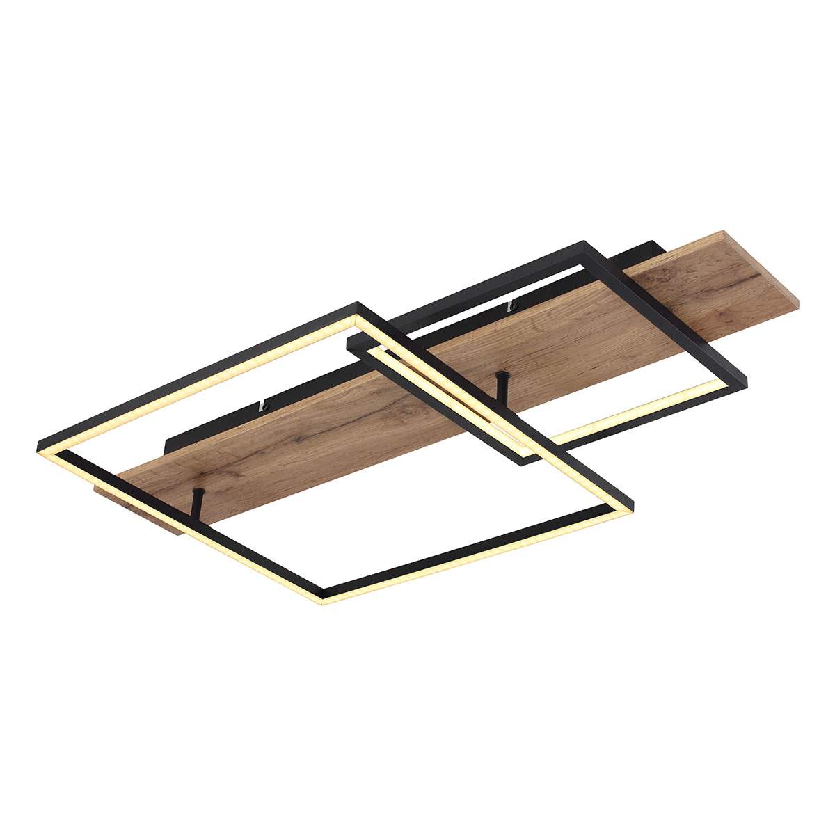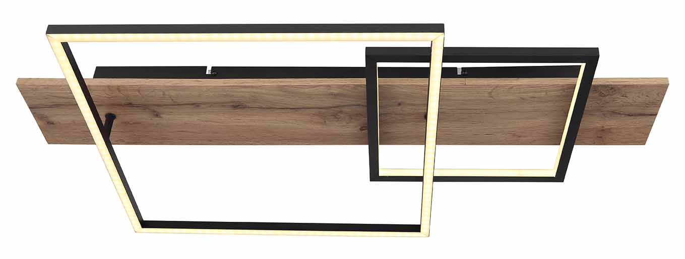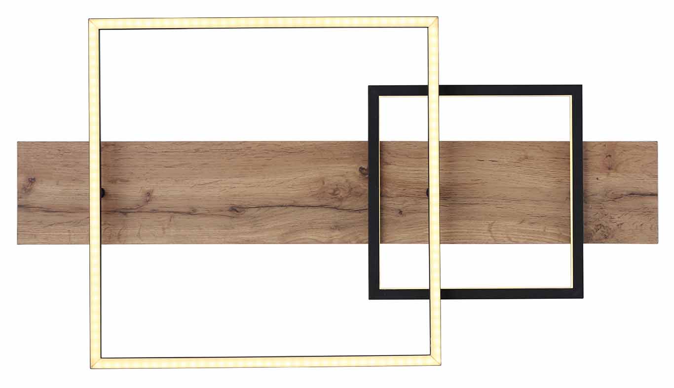Erleben Sie die Eleganz der VANNI-Serie Deckenleuchte, mit ihrem charakteristischen, mattschwarzen MDF-Holzlook und dem Aluminiumrahmen, der mit einem opalen Kunststoff-Ton bereichert ist. Mit ihren variablen Helligkeitseinstellungen, die mühelos über den Wandschalter gesteuert werden können, und einer Speicherfunktion, um Ihre zuletzt gewählte Einstellung beizubehalten, bietet diese Leuchte eine raffinierte und vielseitige Beleuchtungslösung. Das Lichtgerät verkörpert zwei ästhetische Quadrate von 40x40cm und 25x25cm. Die Kombination aus LED-Technologie mit einer Leistung von 24W 230V, einer Ausgangsleistung von 2800lm und 1100lm sowie einer Farbtemperatur von 3000K sorgt für ein angenehmes und energieeffizientes Licht.
