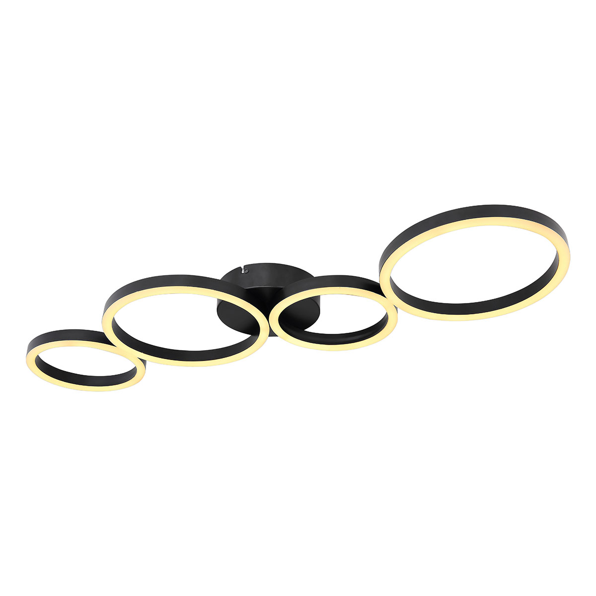 Setzen Sie einen neuen Standard in der Wohnkultur mit der fortschrittlichen Deckenleuchte “VENOSA”. Diese Lampe ist mit vier stilvollen, schwarzen Metallringen verziert, die mit einem Kunststoffschirm für zusätzliche Langlebigkeit versehen sind. Die Lampe verfügt über eine integrierte LED-Platte, die mit 1500 Lumen und 3000 Kelvin ein warmes, helles Licht erzeugt. Die Abmessungen (L: 88,5 cm, B: 33 cm, H: 6,5 cm) machen sie zu einer auffälligen Ergänzung für jeden Raum. Auch erhältlich in einer frischen, weißen Farbgestaltung.