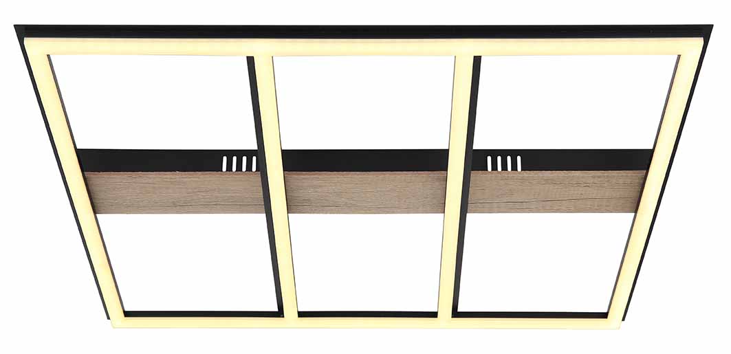Erleben Sie die raffinierte Kombination aus Metall und MDF-Holzoptik in der dunklen mattschwarzen Ausführung mit der modernen Deckenleuchte aus der FROOMY-Serie. Diese Lampe hat die Maße 600x600x55mm und eignet sich für größere Räume, während der opalartige Kunststoffschirm ein gleichmäßiges und gemütliches Licht verbreitet. Das integrierte LED sorgt für eine starke und dennoch energieeffiziente Helligkeit, mit 3600lm bei 3000K, steigend auf einen Spitzenwert von 4900lm für Orte, die mehr Licht benötigen. Die Deckenleuchte ist somit perfekt für alle, die nach einer Beleuchtungslösung suchen, die sowohl ästhetisch als auch praktisch ist.