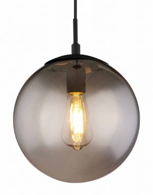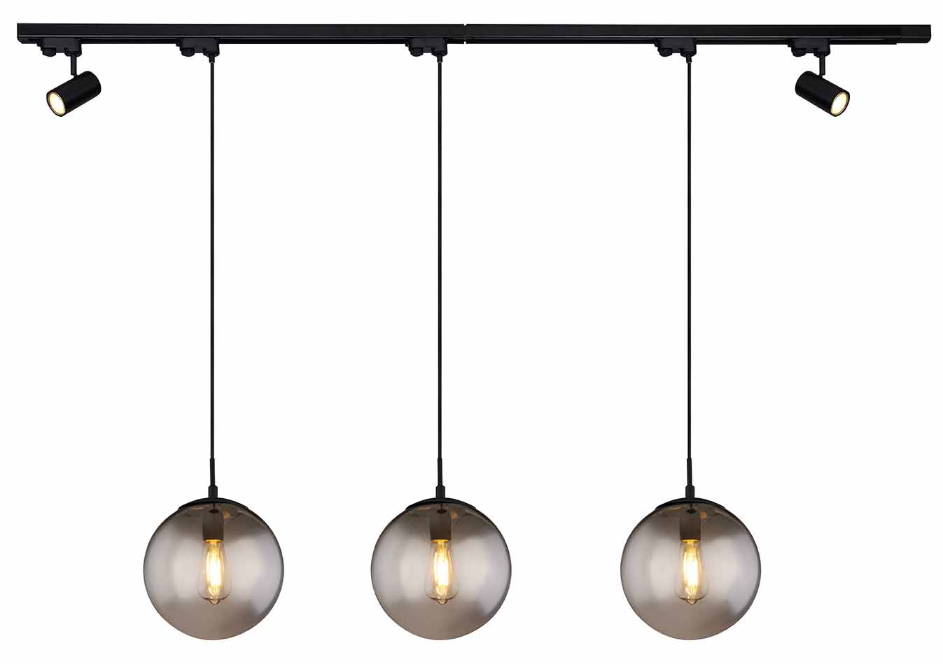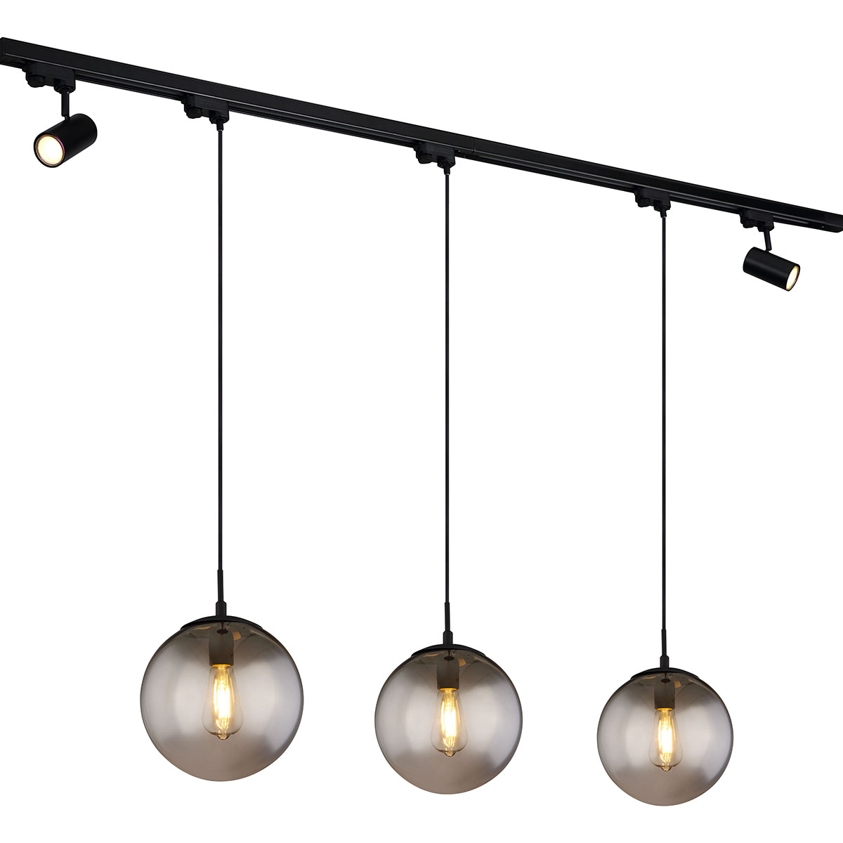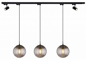 <pDiese elegant schwarze Hängeleuchte verleiht jedem Raum einen Hauch von Glamour. Mit drei rauchigen Glasschirme (Ø25cm) und zwei drehbaren GU10-Leuchten auf beiden Seiten einer fast 2 Meter langen Metallstange, schafft dieses einzigartige Stück eine dynamische Lichtatmosphäre. Es ist anpassbar mit E27-Lampen nach Wahl (exklusive 3xE27, 40 Watt), wodurch Farbe und Lichtintensität einfach geändert werden können – wir empfehlen LED-Lampen für Effizienz und Nachhaltigkeit. Perfekt für den Einsatz in Schlafzimmern, Wohnzimmern und Esszimmern, kann diese klassische Leuchte mit anderen Modellen aus derselben Serie kombiniert werden, um ein harmonisches Interieur zu schaffen.