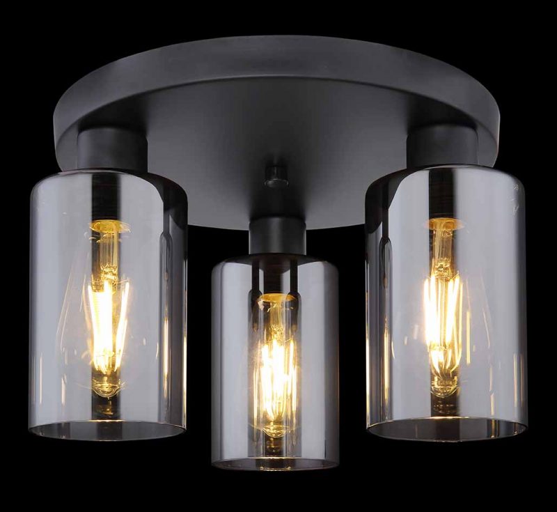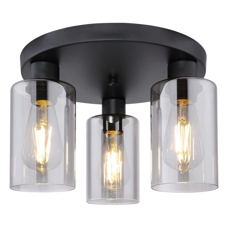 Schaffen Sie eine stimmungsvolle Atmosphäre mit dieser runden Deckenlampe aus der Hadera-Serie, hergestellt aus schwarzem mattem Metall. Mit einem Durchmesser von 16 cm und zylindrischen Schirmen (ø 10 cm) bietet diese drei E27-Fassungen, um die Lichtfarbe und Helligkeit selbst zu bestimmen.