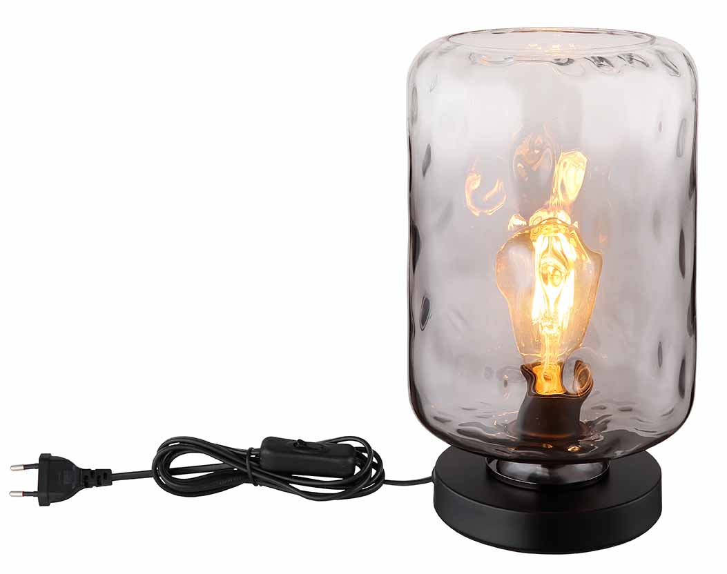Entdecken Sie den Charme der modernen, eleganten Tischlampe, gefertigt aus mattschwarzem Metall mit einzigartigem rauchfarbenem Glas. Mit einem Durchmesser von 190 mm und einer Höhe von 325 mm fügt diese Lampe Ihrem Wohnzimmer, Esszimmer oder Schlafzimmer ein stimmungsvolles Licht hinzu. Die Lampe ist benutzerfreundlich dank eines Kippschalters am mit PVC ummantelten schwarzen Kabel. Bitte beachten Sie, dass eine 230V, E27 60W Lampe für den Betrieb erforderlich ist, die separat verkauft wird. Die Tischlampe verspricht nicht nur Funktionalität, sondern auch eine raffinierte Ästhetik.