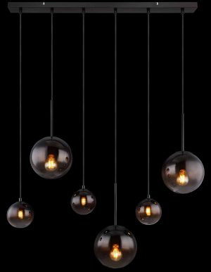 Entdecken Sie den Charme dieser Hängeleuchte aus rauchigem, bernsteinfarbenem und klarem Glas. Das elegante Design kombiniert eine moderne mattschwarze Metallstruktur mit geheimnisvollen Glastönen. Mit Abmessungen von 910x200x1170 mm passt diese Lampe perfekt in jeden Raum, während die unterschiedlichen Glasdurchmesser von 20 cm und 12 cm eine einzigartige Ästhetik hinzufügen. Bitte beachten Sie, dass die benötigten Lampen (3x E27 LED 9W 230V, exkl. 3x G9 LED 5W 230V) nicht enthalten sind.