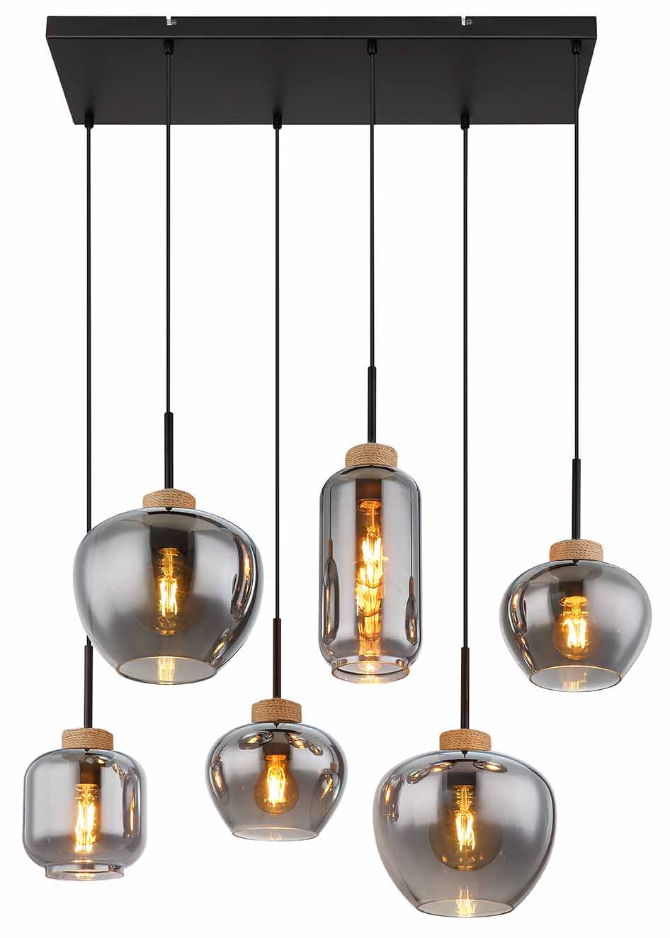 Fügen Sie Ihrem Interieur mit der Globo Matt Hängeleuchte eine moderne, luxuriöse Note hinzu. Diese schwarze Metallleuchte mit sechs Lichtpunkten und einem eleganten Rauchglas-Finish ist eine stilvolle Wahl für jedes Wohnzimmer. Dank der E27-Fassung und dimmbaren Optionen können Sie die Lichtstärke anpassen, um die perfekte Atmosphäre zu schaffen. Obwohl die Lichtquelle nicht enthalten ist, bietet die Leuchte mit ihrer zwei Jahre Garantie eine zuverlässige und stilvolle Beleuchtungslösung.