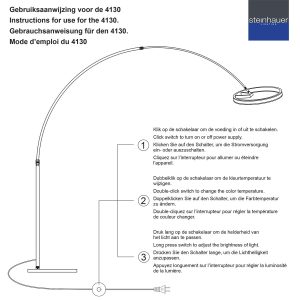 Die Ringlux Bogenlampe von Steinhauer ist ein echter Blickfang in jedem Raum. Dieses moderne schwarze Modell mit Metalloberfläche kombiniert Eleganz mit Funktionalität. Die große, runde und neigbare Lichtquelle von 50 cm bietet eine flexible Lichtverteilung mit einer Leistung von 4000 Lumen. Dank des Fußschalters kannst du die Lichtfarbe einfach zwischen 2200K, 2600K und 3000K anpassen und das Licht nach Wunsch dimmen. Der verstellbare Bogen ermöglicht es, die Beleuchtung optimal auf dein Interieur abzustimmen. Eine stilvolle Ergänzung für das Esszimmer oder das Wohnzimmer, perfekt für Designliebhaber.
