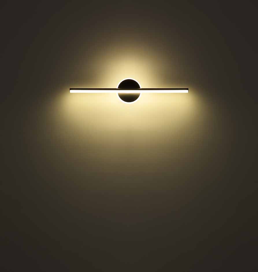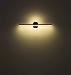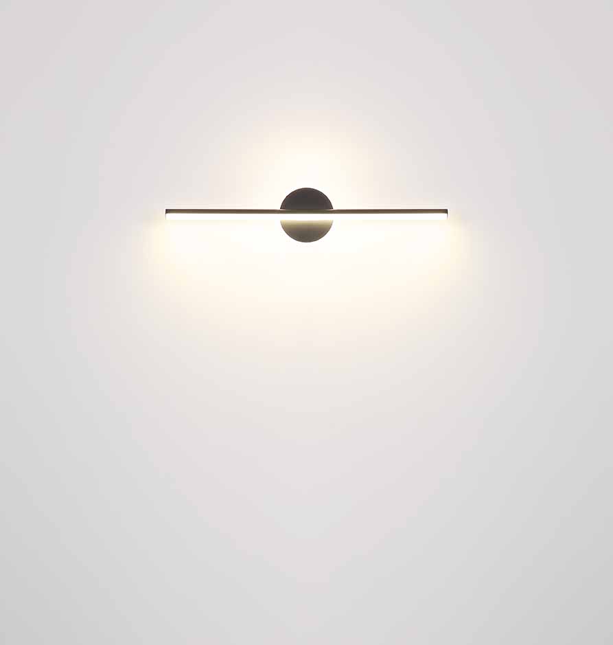 Unsere zeitgenössische Wandlampe ist eine perfekte Beleuchtungslösung für jeden Raum in Ihrem Zuhause. Das Design zeichnet sich durch eine runde, schwarze Metallwandhalterung aus, aus der ein LED-Panel mit einem Ausfall von 74 cm und einer Länge von 61 cm herausragt. Diese LED-Panels liefern eine neutrale Beleuchtung von 4000 Kelvin und bieten durch ihre IP44-Klassifizierung Widerstand gegen Spritzwasser. Diese stilvolle Lampe bietet sowohl Funktionalität als auch eine charmante Ästhetik.