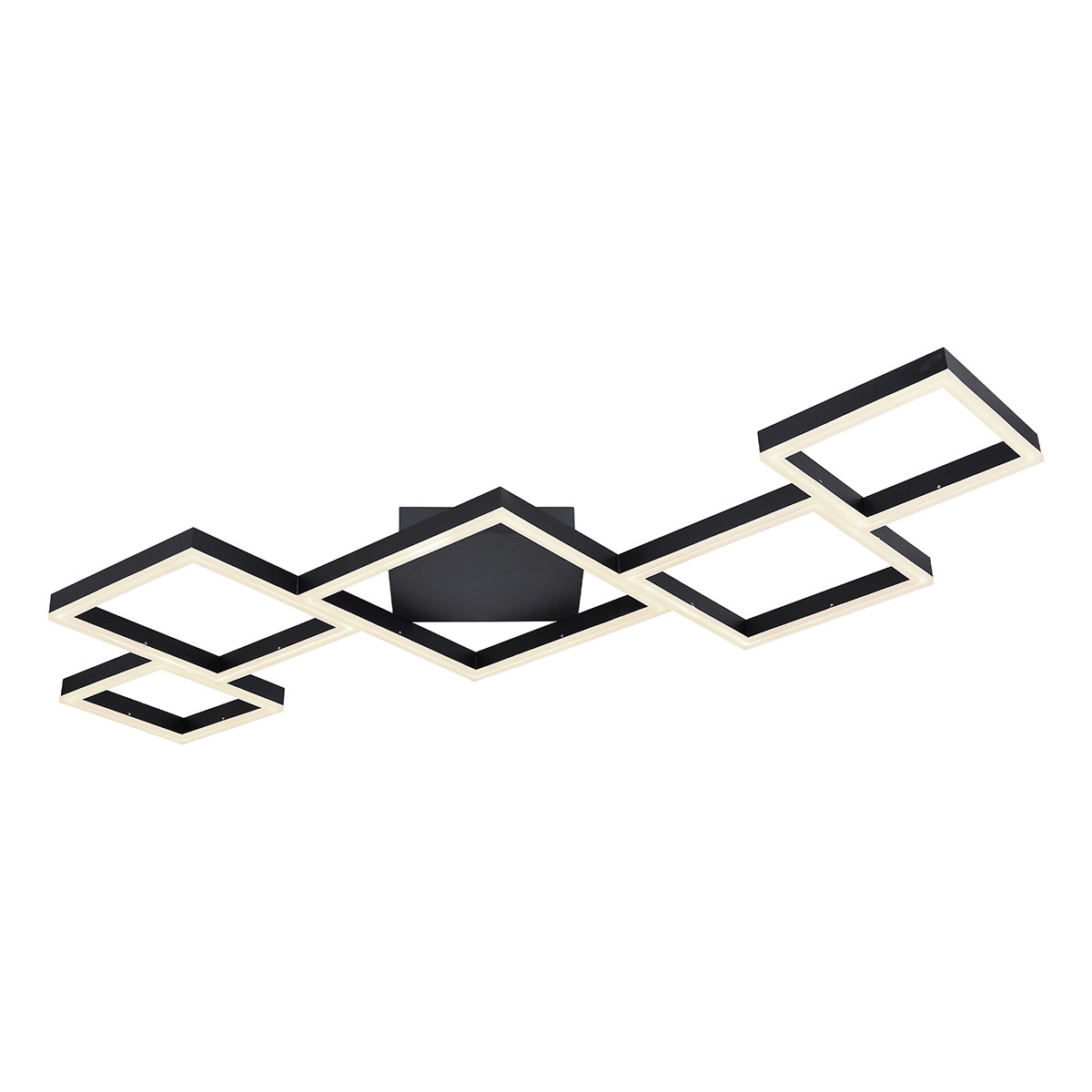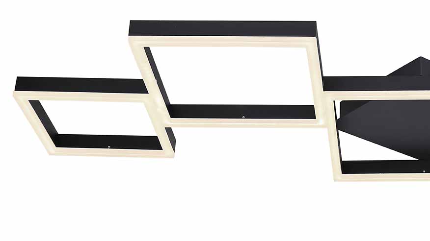 Die Kurio Deckenlampe ist eine stilvolle Lampe, die aus mattschwarzem Metall gefertigt ist und deinem Interieur eine markante, zeitgemäße Ausstrahlung verleiht. Diese Deckenbeleuchtung mit einer Länge von 120 cm besteht aus fünf miteinander verbundenen Metallrahmen, die nach außen hin kleiner werden und so ein einzigartiges Design schaffen. Die in opalem Acryl gehaltenen LED-Lampen strahlen kraftvolles Licht mit 1800 Lumen aus, das du mithilfe der mitgelieferten Fernbedienung dimmen und von warmen 2700 Kelvin bis zu kühlem Weiß mit 6000 Kelvin anpassen kannst. Um dein Zuhause weiter zu personalisieren, kannst du die Lampe mit anderen Artikeln aus der Kurio-Serie kombinieren.