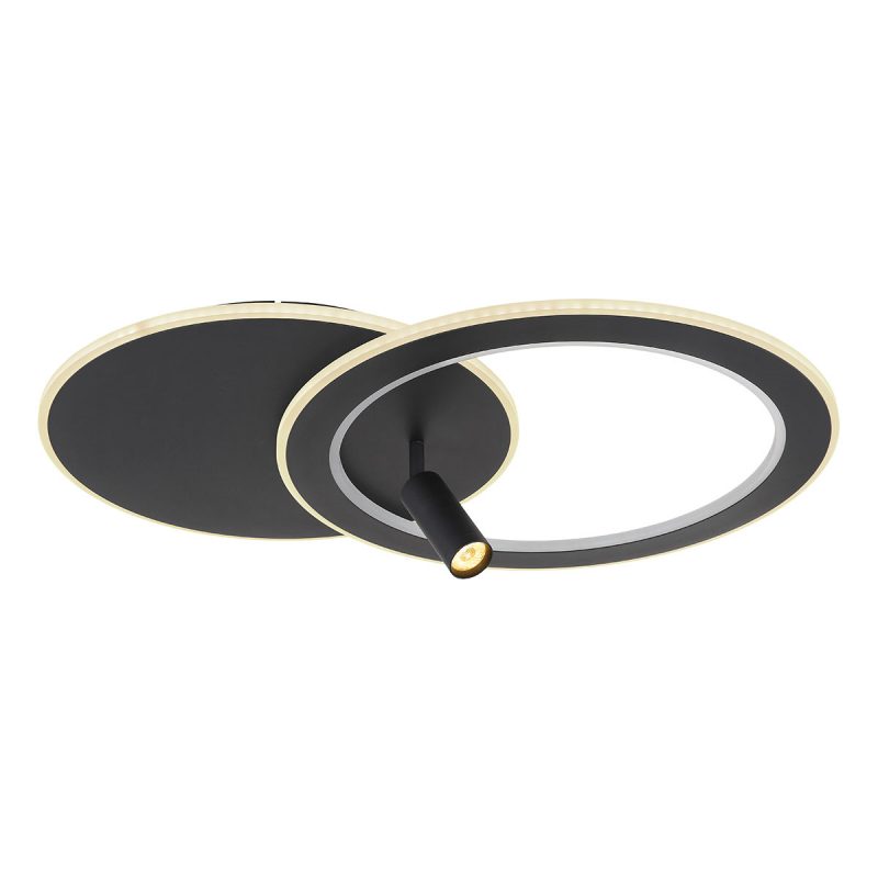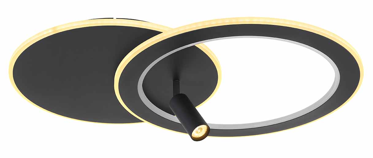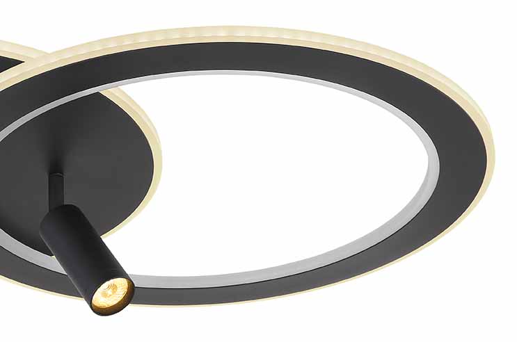 Entdecken Sie eine neue Dimension der Wohnraumbeleuchtung mit dieser fortschrittlichen Deckenleuchte, die für ihr modernes Design und hochwertige Funktionen bekannt ist. Die Lampe, gekennzeichnet durch zwei elegante Ringe, umfasst einen zylindrischen Spot und doppelte LED-Panels, die rotes, grünes und blaues Licht ausstrahlen. Das Lichtspektrum variiert zwischen einem gemütlichen warmen neutralen Weiß von 2700 Kelvin und einem hellen, kühlen Weiß von 6500 Kelvin. Einzigartige Funktionen wie Dimmen, Speicherstände und die Möglichkeit, die Farbe zu fixieren, lassen sich einfach über die mitgelieferte Fernbedienung steuern, sodass Sie die perfekte Stimmung für jeden Anlass einstellen können.