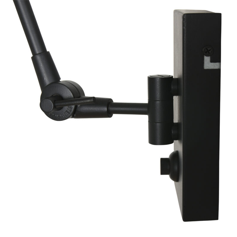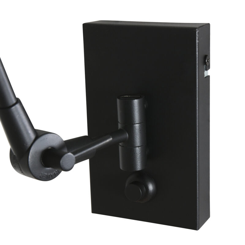 Moderne schwarze Wandleuchte aus der Prestige Chic-Serie von Steinhauer, ausgestattet mit einem langen, schwenkbaren Arm und einem naturfarbenen Schirm aus schwarzem Bambus. Dank der vier verstellbaren Punkte und des neigbaren E27-Sockels kann das Licht optimal ausgerichtet werden. Der Dimmer ist in die Wandplatte integriert und die Leuchte ist mit einem Anschlusskabel und Stecker ausgestattet. Geeignet für Bohemian-Interieurs im Esszimmer oder Wohnzimmer. Inklusive 2 Jahren Garantie.