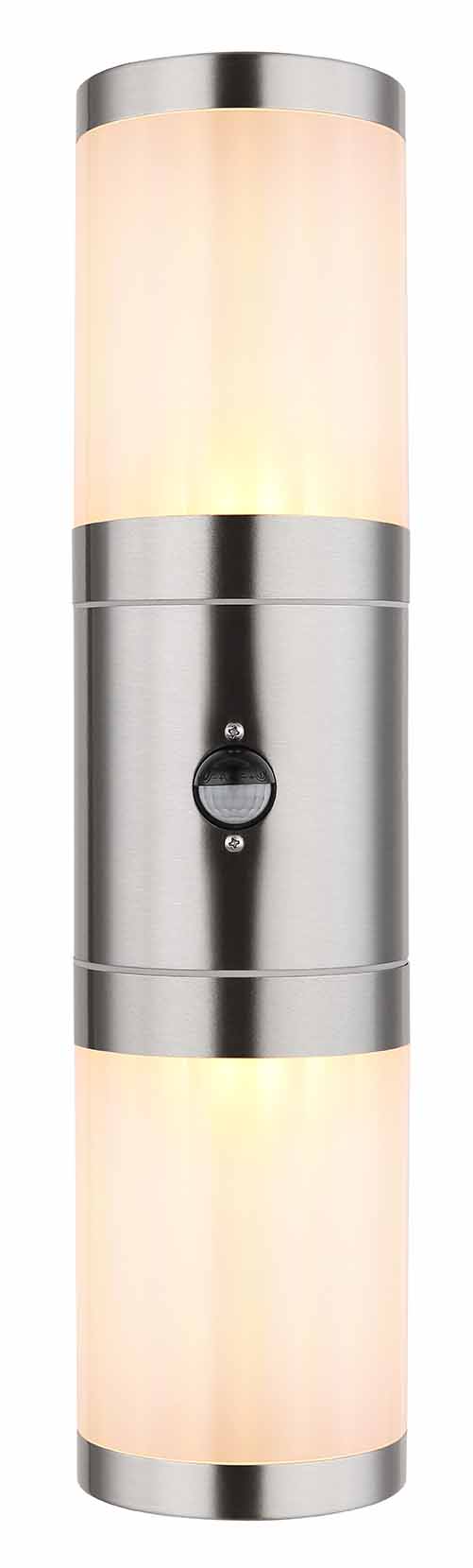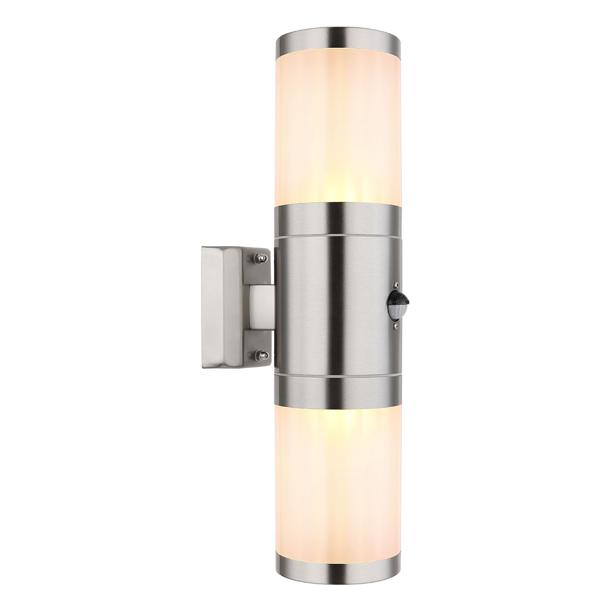 Vergrößern Sie den Charme Ihres Außenbereichs mit dieser Xelo-Serie Designer-Außenbeleuchtung. Hergestellt aus Edelstahl und opalem Kunststoff, ist diese Lampe speziell für den Außenbereich konzipiert dank des IP44-Schutzes. Sie verfügt über zwei E27-Anschlüsse, die sowohl nach oben als auch nach unten Licht abstrahlen, was einen wunderschönen Effekt erzeugt, wenn sie mit einer LED-Lampe (maximal 60W) ausgestattet ist. Der integrierte Sensor, mit einem Erfassungsbereich von 4-8 Metern und einem Erfassungswinkel von 110°, erhöht die Funktionalität. Ergänzen Sie Ihren Außenbereich mit den stilvollen und praktischen Beleuchtungslösungen der Xelo-Serie.