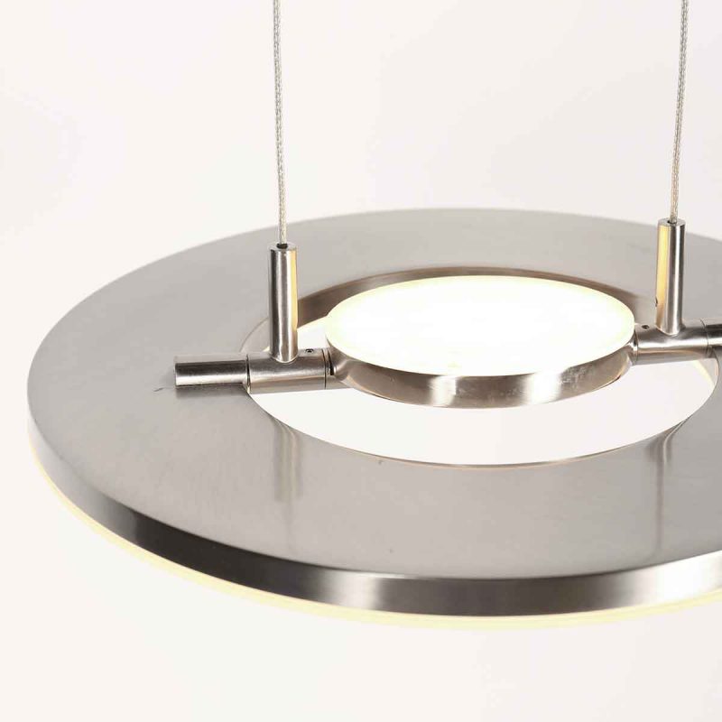 Die Soleil Hängeleuchte von Steinhauer Exclusive bringt moderne Eleganz ins Zuhause mit einem schlichten Stahlfarbenen Design. Mit einem Durchmesser von 32 cm und einer raffinierten Metalloberfläche passt diese Lampe perfekt über einen Esstisch, Schreibtisch oder Kücheninsel. Das innovative drehbare Ringelement sorgt für einen verspielten Lichteffekt, bei dem sowohl direktes als auch indirektes Licht erzeugt werden kann. Die Lichtausbeute von 4000 Lumen in Kombination mit der warmen Farbtemperatur von 2700K macht diese Lampe ideal für verschiedene Räume.