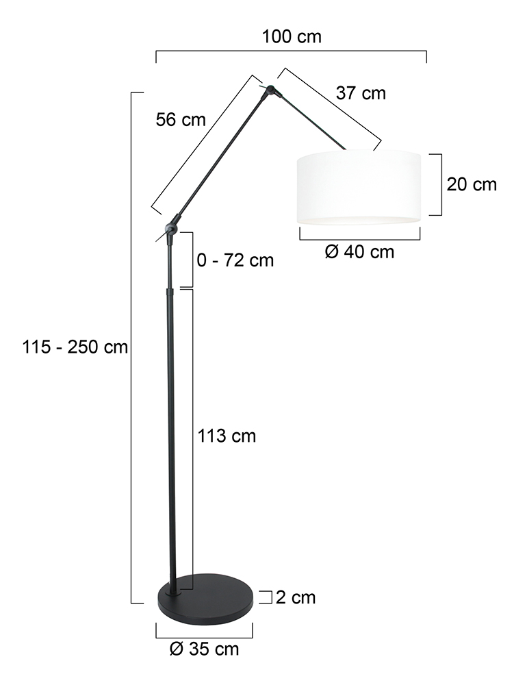 Eine einzigartige Kombination aus modernem Design und Funktionalität. Der schlichte schwarz-weiße Look verleiht dieser Stehlampe ein stilvolles Aussehen, während der verstellbare Gelenkarm für optimalen Komfort sorgt. Ideal als stimmungsvolle Beleuchtung oder um einem Arbeitsplatz das gewisse Extra Licht zu geben.