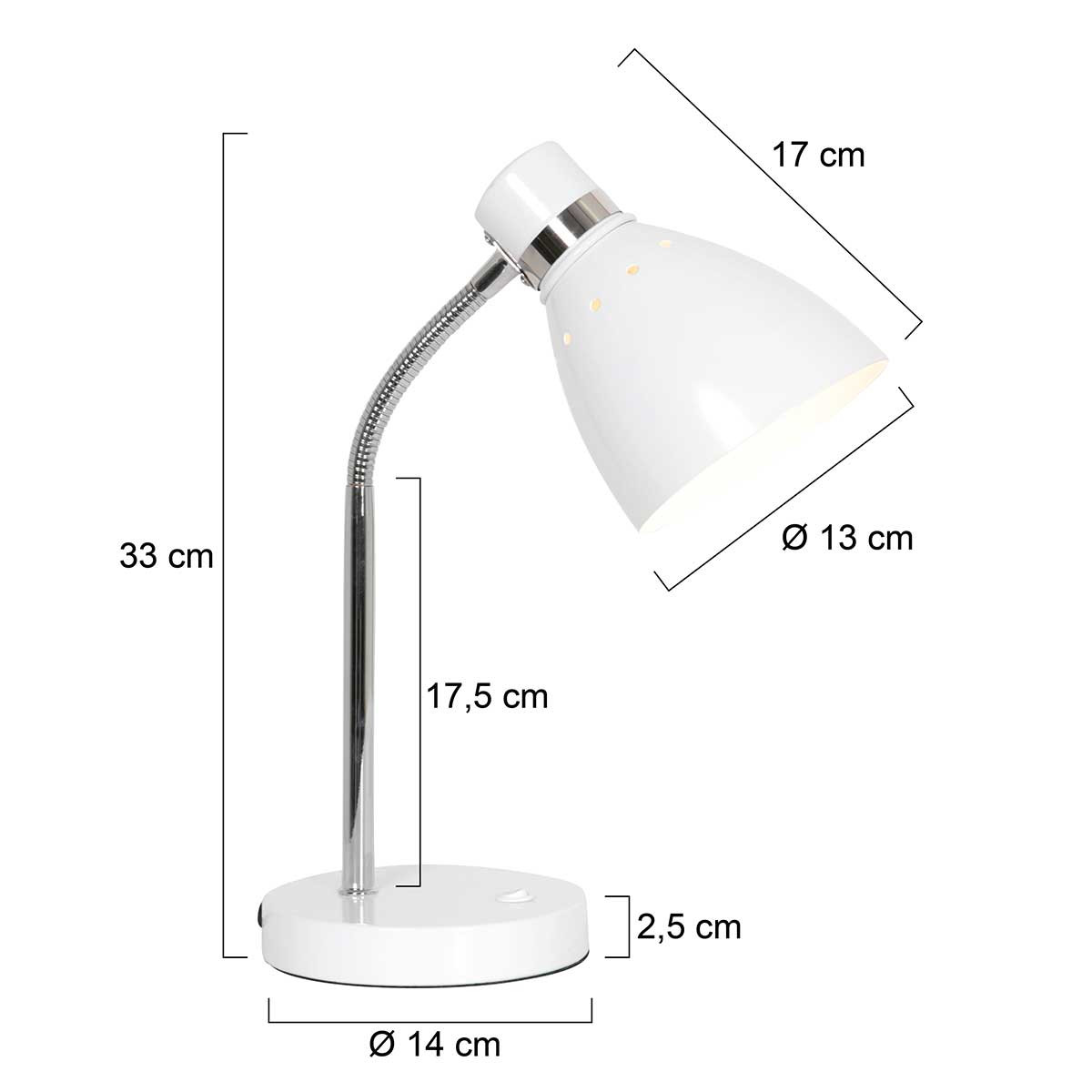 Die moderne Tischlampe Spring in Weiß kombiniert minimalistisches Design mit praktischer Funktionalität. Der silberfarbene Stab und der weiße Schirm sorgen für ein frisches Erscheinungsbild, während der weiße Sockel der Lampe einen eleganten Touch verleiht. Ausgestattet mit einer E27-Fassung, sodass Sie selbst eine geeignete Lichtquelle wählen können. Der integrierte Ein/Aus-Schalter am Fuß macht die Bedienung einfach, während der flexible Arm die Lichtverteilung ganz nach Wunsch anpassen lässt. Diese Tischlampe der Marke Steinhauer wird mit 2 Jahren Garantie geliefert.