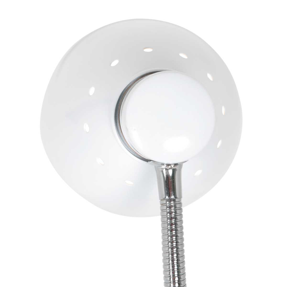 Die weiße, moderne Tischlampe von Steinhauer besticht durch ihre Einfachheit. Am oberen Ende des Lampenschirms verläuft ein stilvoller silberner Rand. Der Schirm ist außerdem mit gleichmäßig verteilten Löchern versehen, die das Licht der Lampe durchlassen. Dies verleiht der Lampe einen zusätzlichen stimmungsvollen Effekt. Stellen Sie die Höhe des Schirms mit dem flexiblen Arm selbst ein und drehen Sie den Schirm in die gewünschte Richtung.