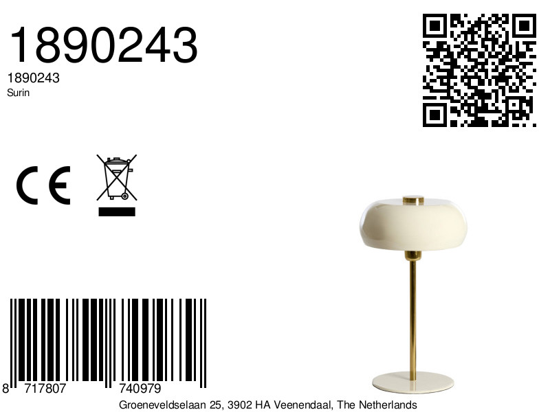 Moderne Tischlampe weiß-gold Light & Living Surin