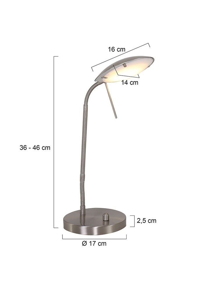 Die Eloi Tischlampe von Mexlite kombiniert modernes Design mit Funktionalität. Diese wunderschöne Metall-Tischlampe ist die perfekte Ergänzung für Ihren Schreibtisch oder Nachttisch. Der flexible Hals ermöglicht es, das Licht genau dorthin zu richten, wo Sie es benötigen. Mit ihrer eingebauten LED-Lichtquelle sorgt Eloi für eine warme und helle Beleuchtung, die sich perfekt zum Lesen oder Arbeiten eignet. Darüber hinaus ist die Lampe mit einem Drehdimmer ausgestattet, sodass Sie die Lichtintensität selbst anpassen können. Warum sollten Sie sich für Eloi entscheiden? Weil es eine perfekte Mischung aus Stil und Funktionalität ist und ein echter Blickfang in jedem Interieur.