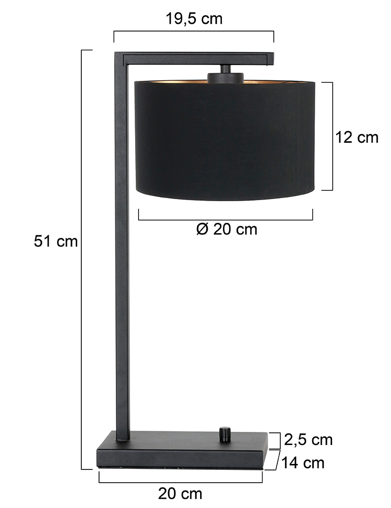 Die Bedienung erfolgt über einen praktischen Drehknopf am Fuß. Mit einer Höhe von 51 cm, einer Tiefe von 20 cm und einer Kabellänge von 140 cm passt diese Tischlampe perfekt auf ein Sideboard, Nachttisch oder in eine gemütliche Sitzecke.
