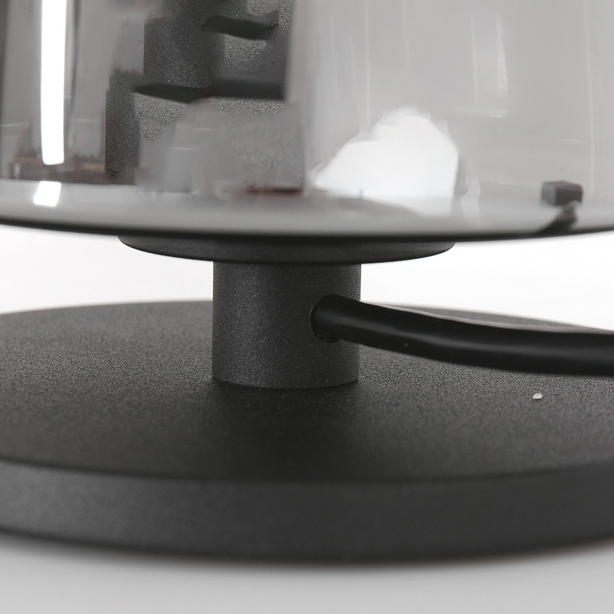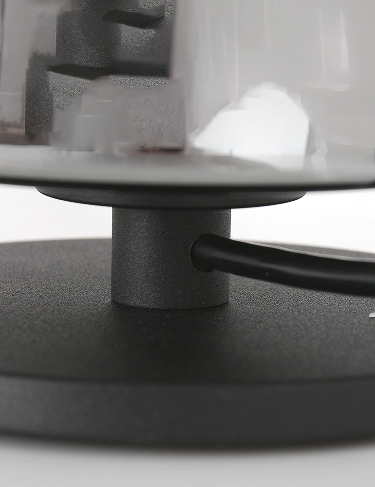 Die Ancilla Tischlampe in Schwarz mit rauchglas Abdeckung ist ein stilvoller Blickfang. Die Lampe hat eine E27 Fassung und ist geeignet für Leuchtmittel bis 40 Watt (nicht enthalten). Mit der Touchbedienung am Metallfuß schaltest du die Lampe ganz einfach ein und aus. In Kombination mit einem 3-stufig dimmbaren Leuchtmittel kann die Lichtintensität nach Belieben geregelt werden. Wird mit einem 180 cm langen Kabel geliefert.