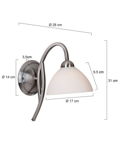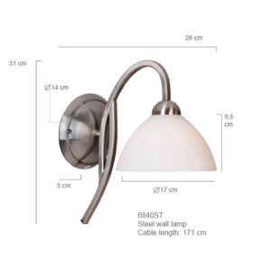 Die Wandleuchte in Stahlfarbe aus der Capri-Serie von Steinhauer vereint eine raffinierte Erscheinung mit funktionaler Beleuchtung. Die eleganten Metallbögen verleihen dieser Lampe eine elegante Note, während der handgefertigte weiße Glasschirm für eine angenehme und stimmungsvolle Lichtverteilung sorgt. Dank der E27-Fassung ist die Lampe für Lichtquellen bis zu 40 Watt geeignet. Der integrierte Schnurschalter macht die Benutzerfreundlichkeit perfekt. Ideal für alle, die eine klassische Wandleuchte für das Schlafzimmer, Wohnzimmer oder den Flur suchen.