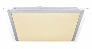 Entdecken Sie die Rena Deckenlampe, ein modernes und elegantes Beleuchtungselement, das dank seiner rechteckigen Form von 55×55 cm nahtlos in jeden Raum integriert. Die Lampe besteht aus Elementen aus glänzendem weißen Metall und opalem Kunststoff, bereichert mit einem subtilen Kristalleffekt. Diese Innenlampe, ausgestattet mit einer Standard 48W LED, verbreitet beeindruckende 3200 Lumen helles Licht. Das Besondere an dieser Lampe ist die dimmbare Lichtfarbe, die von einem warmen Weißton von 3000K bis hin zu klarem Tageslicht von 6000K reicht und mit der mitgelieferten Fernbedienung geregelt werden kann.