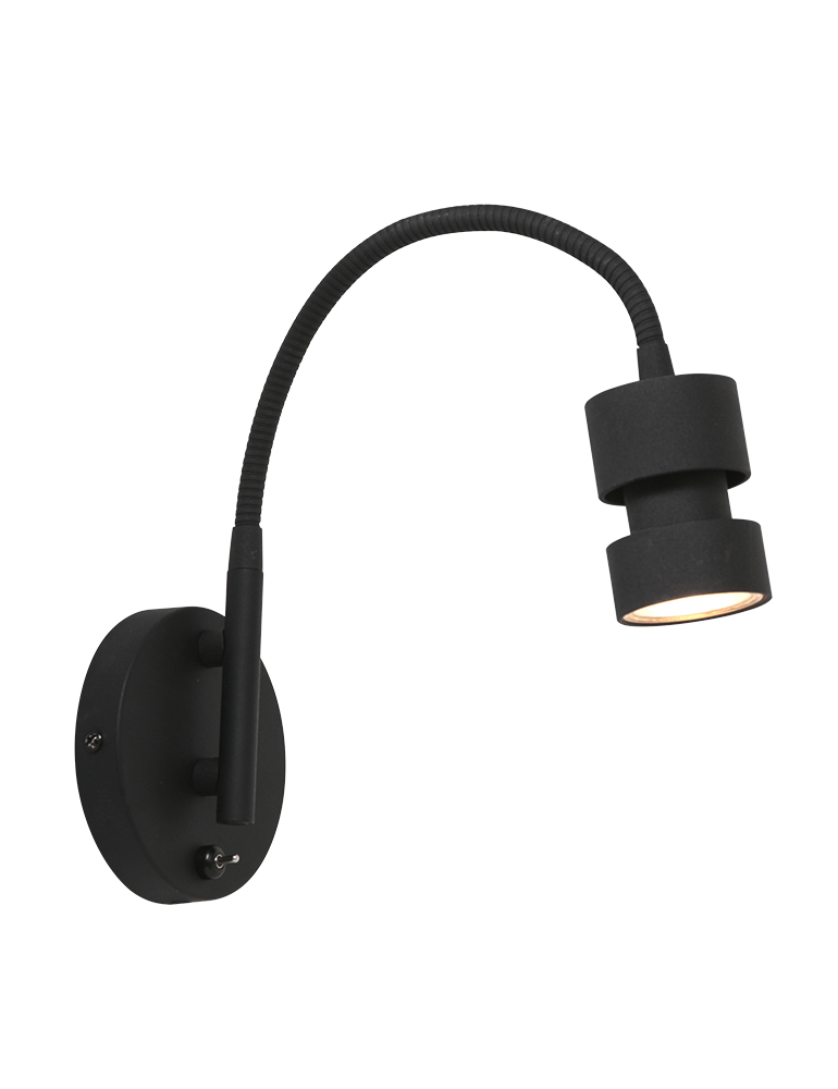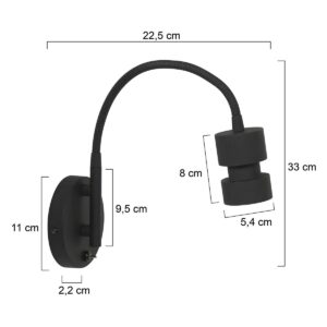 Die Natasja Wandlampe in Schwarz bietet funktionale und stimmungsvolle Beleuchtung. Der flexible Arm ermöglicht es, den Spotkopf in die richtige Richtung zu drehen. Inklusive einer GU10 Lichtquelle mit Dim-to-Warm-Technologie, einstellbar zwischen 2200 und 2700 Kelvin mit einer Lichtausbeute von 350 Lumen. Ausgestattet mit einem praktischen Ein/Aus-Schalter auf der Wandplatte, perfekt neben dem Bett oder in der Sitzecke.
