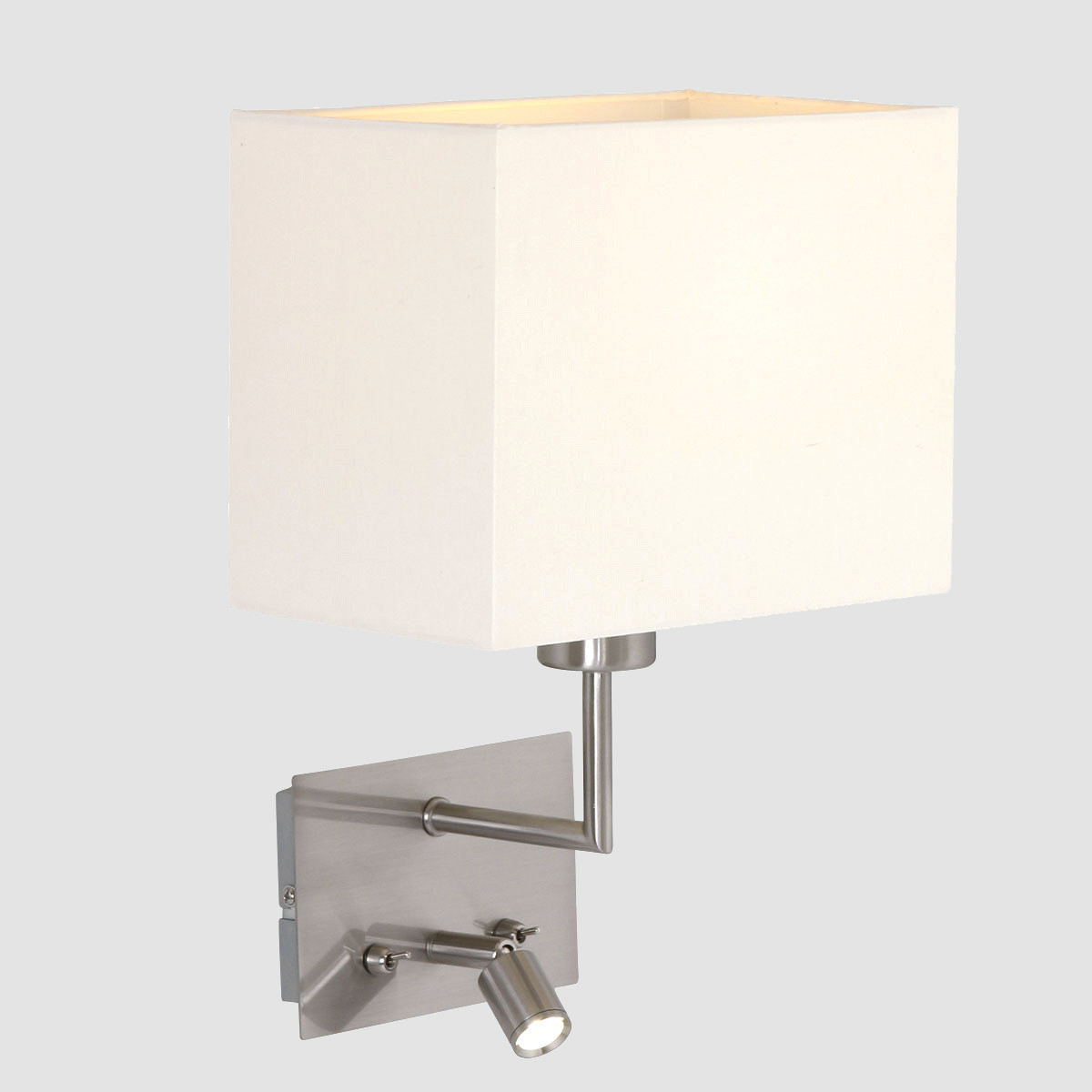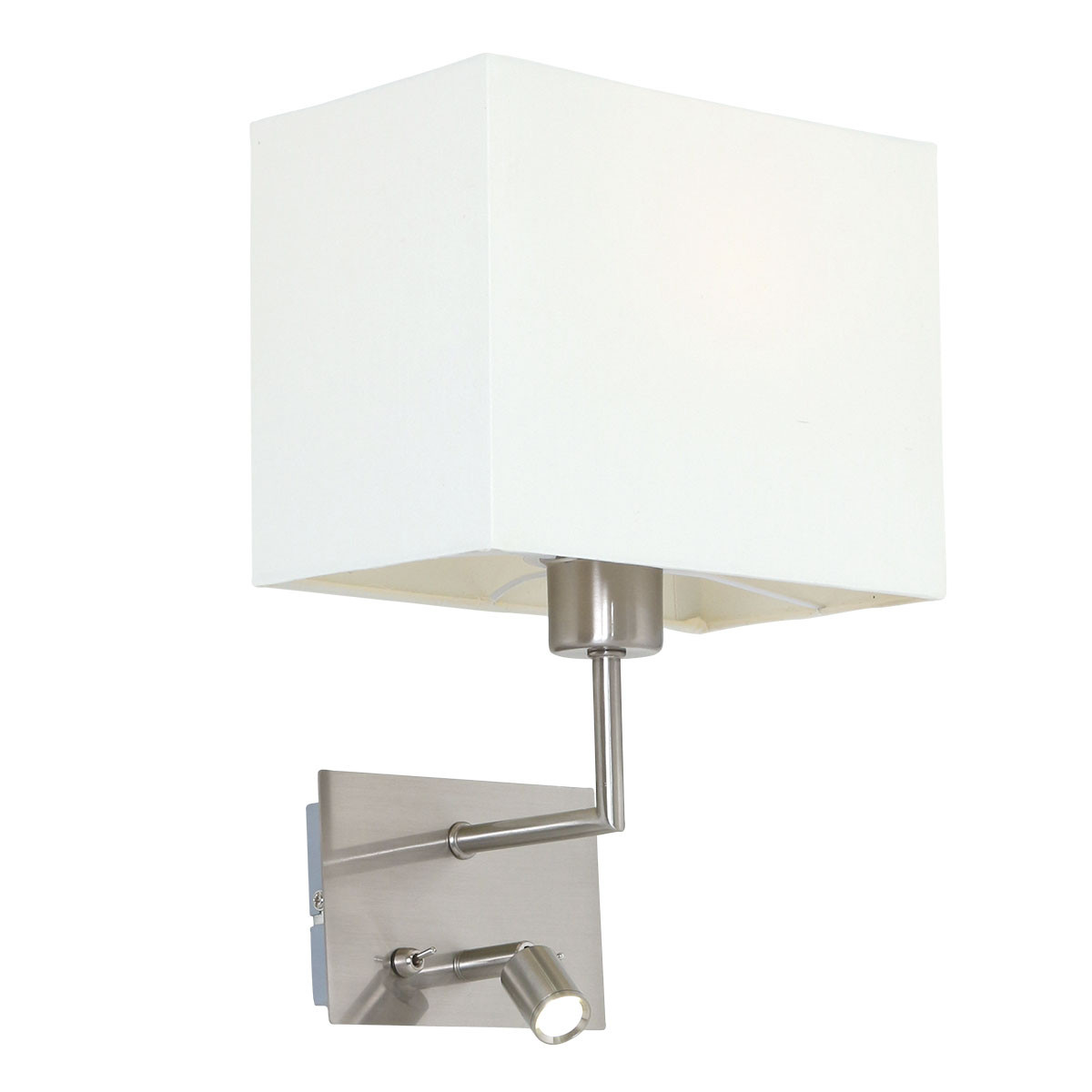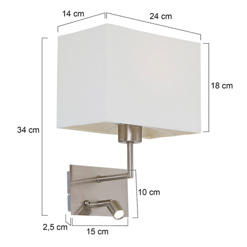 Die Nouveau Wandleuchte aus der Mexlite-Serie kombiniert Funktionalität mit modernem Design. Die Wandleuchte ist in einem stahlfarbenen Ton ausgeführt und verfügt über einen rechteckigen Leinen-Schirm in Weiß. Die integrierte LED-Lampe mit 3 Watt bietet helles und gerichtetes Licht, während die E27-Fassung im Schirm für verschiedene Lichtquellen geeignet ist. Dank des doppelten Schalters auf der Wandplatte können beide Lichtquellen unabhängig voneinander bedient werden. Ideal für die Verwendung als Nachttischlampe oder stimmungsvolle Beleuchtung im Wohnzimmer. Diese Wandleuchte von der Marke Mexlite wird mit 2 Jahren Garantie geliefert.