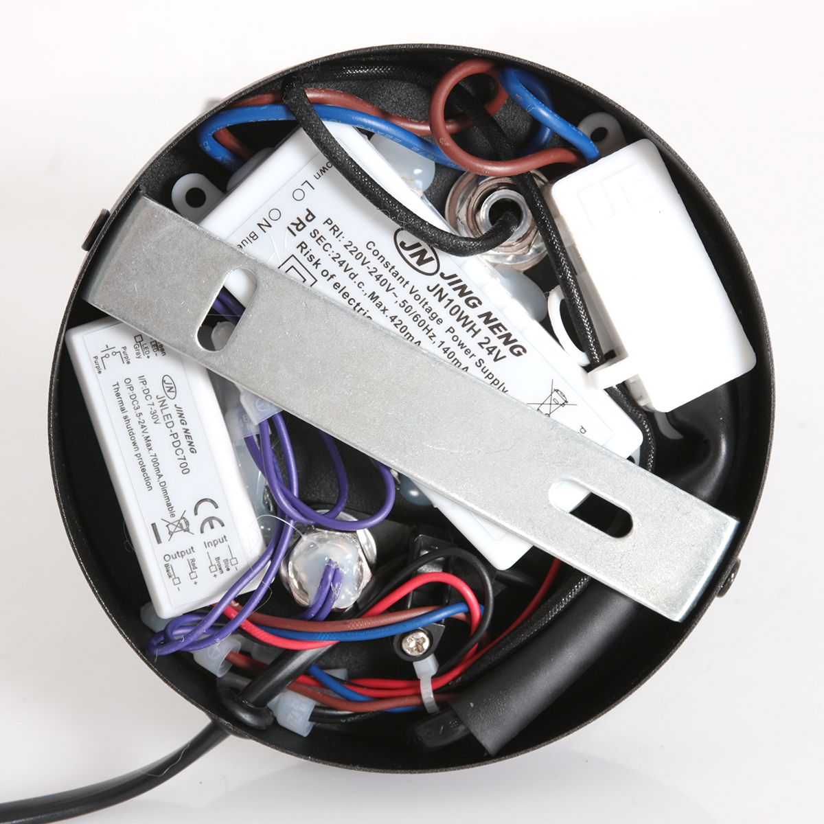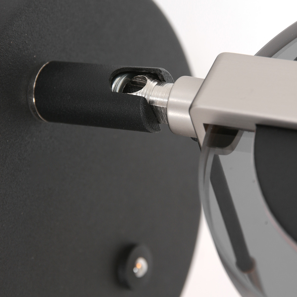 Die Turound Wandlampe in Schwarz kombiniert Eleganz und Funktionalität. Ausgestattet mit einem austauschbaren 10 Watt LED-Modul mit einer Lichtleistung von 1000 Lumen und einer einstellbaren Lichtfarbe zwischen 2200 und 4000 Kelvin. Die Lampe kann mit einem Push-Dimmer auf der Wandplatte bedient werden: kurzes Drücken schaltet das Licht ein oder aus, langes Drücken dimmt die Beleuchtung. Die Wandlampe hat eine Tiefe von 17,8 cm und einen Durchmesser der Wandplatte von 12 cm. Inklusive 180 cm Kabel.