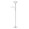 Entdecken Sie die Schönheit und Funktionalität dieser 178 cm hohen Lampe, die kunstvoll zwei Leuchten, eine Stehlampe und eine Leselampe, in einem einzigen Meisterwerk kombiniert. Die raffinierte Struktur aus matt verchromtem Nickel verleiht ein modernes Erscheinungsbild, während das satiniert ausgeführte Glas Eleganz ausstrahlt. LED-Lichtquellen mit E27- und E14-Anschlüssen sorgen für warmweißes Licht mit einer Intensität von jeweils 656 und 195 Lumen, beide mit einer angenehmen Farbtemperatur von 3000K. Darüber hinaus sorgt ein integrierter Schalter für zusätzlichen Bedienkomfort.